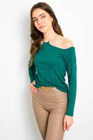 ZIELONA PRĄŻKOWANA BLUZKA Z ŁAŃCUSZKIEM