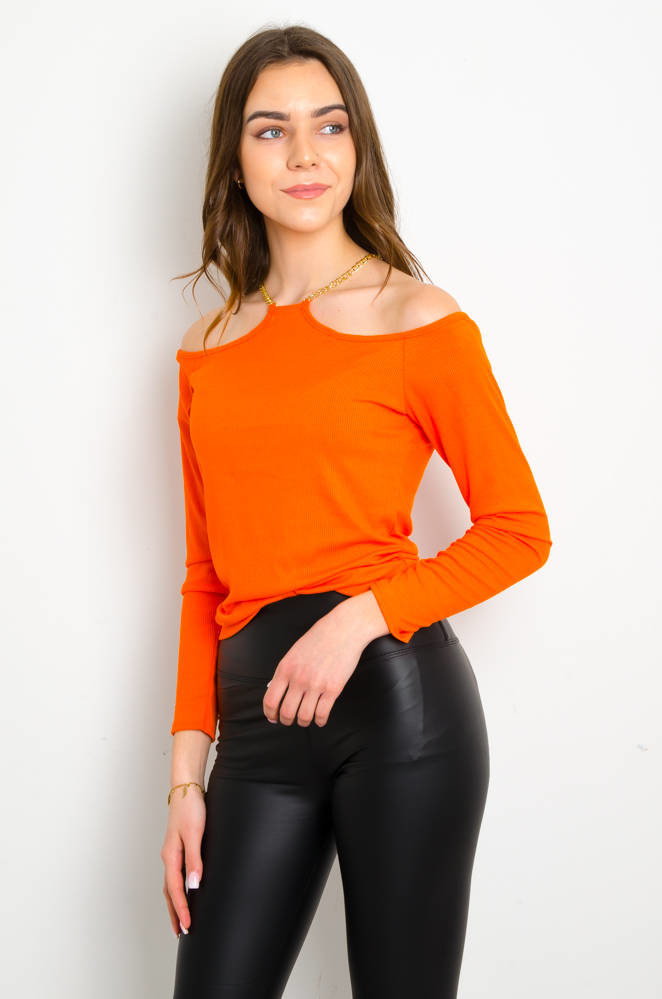 POMARAŃCZOWA PRĄŻKOWANA BLUZKA Z ŁAŃCUSZKIEM