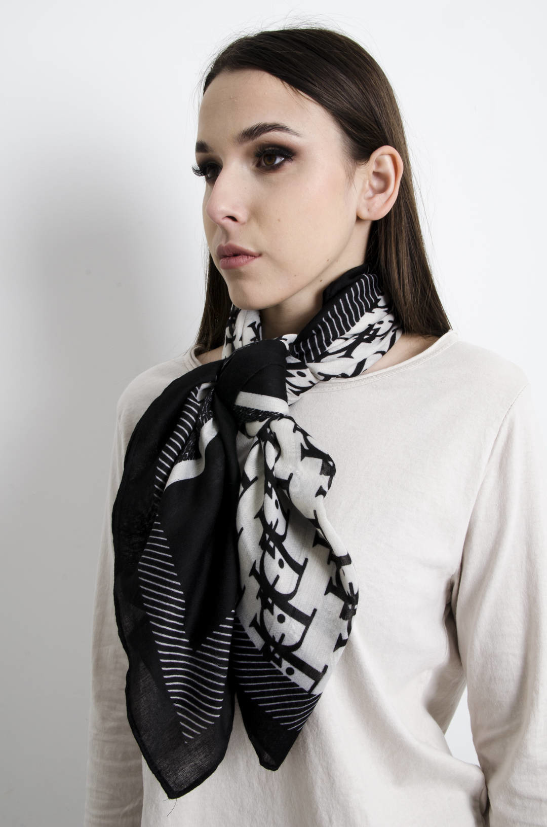 SZAL BIAŁO-CZARNY WZORZYSTY