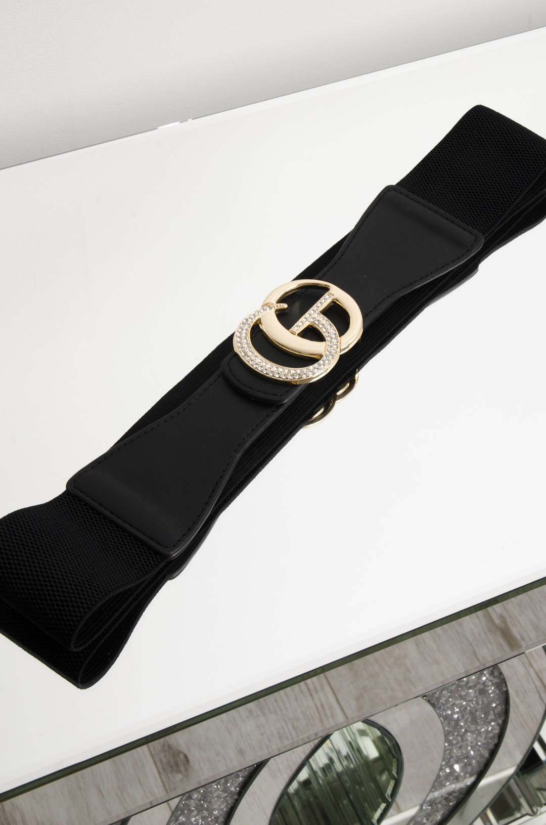 PASEK NA GUMIEZE ZŁOTĄ KLAMRĄ- CZARNY