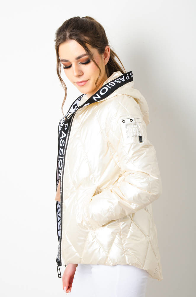 KURTKA WIOSENNA PIKOWANA Z KAPTUREM - EKRI