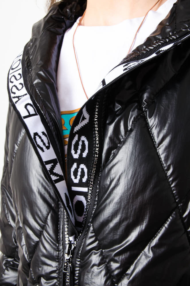 KURTKA WIOSENNA PIKOWANA Z KAPTUREM - CZARNA