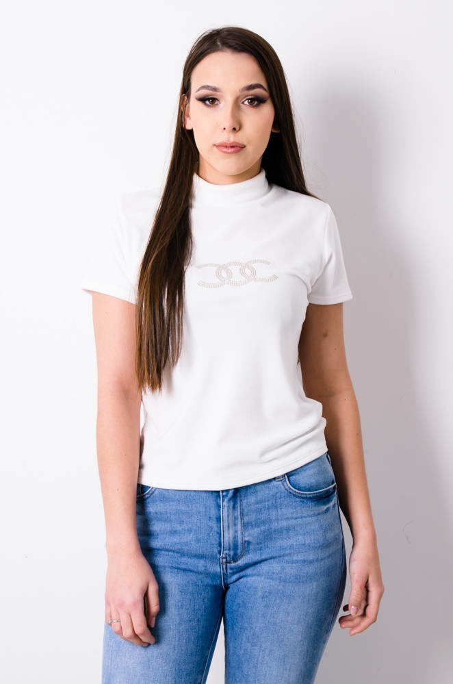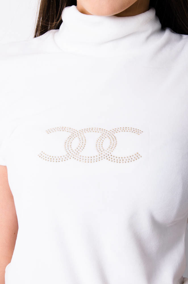 BLUZKA WELUROWA Z CEKINAMI - BIAŁA