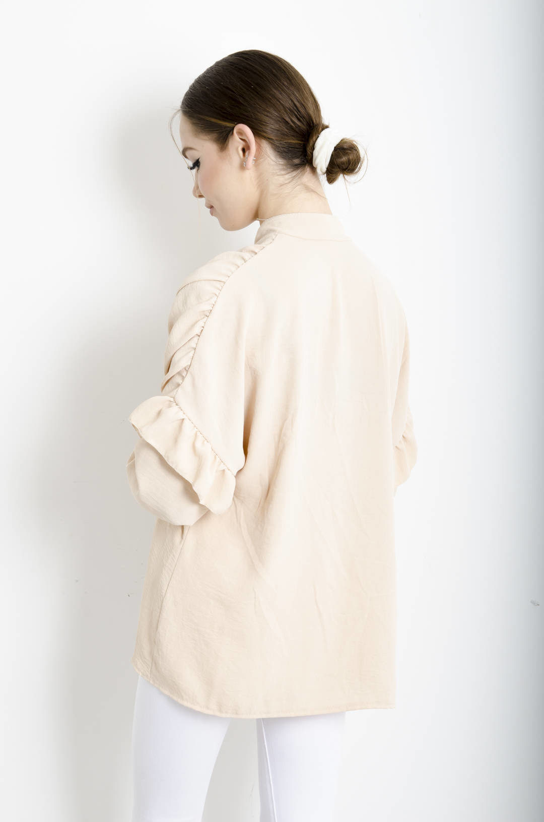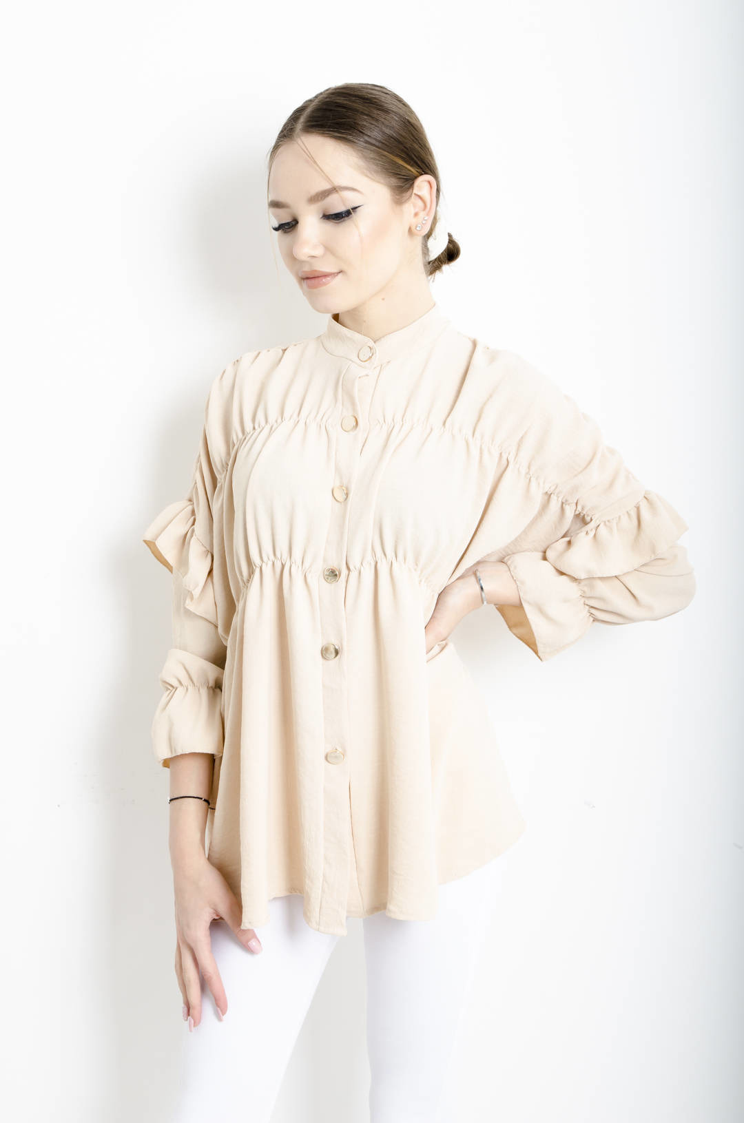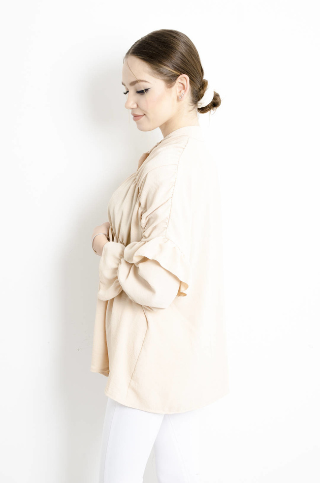 KOSZULA BEŻOWA Z FALBANAMI