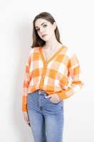 SWETER POMARAŃCZOWY W SZACHOWNICĘ