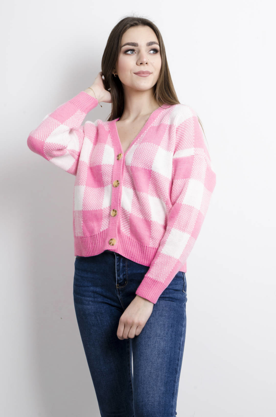 SWETER RÓŻOWY W SZACHOWNICĘ