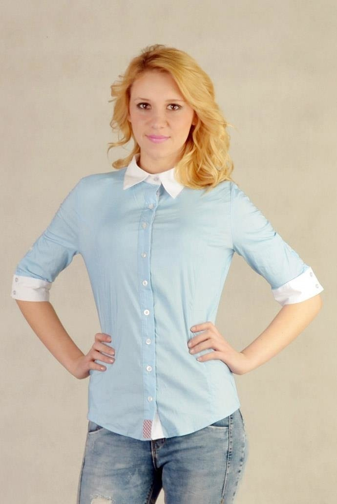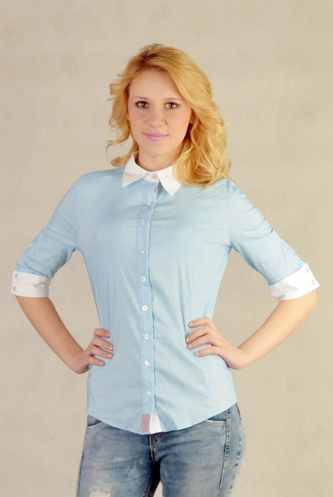 Klasyczna taliowana, elegancka koszula damska zapinana na guziki, z krótkim rękawem.