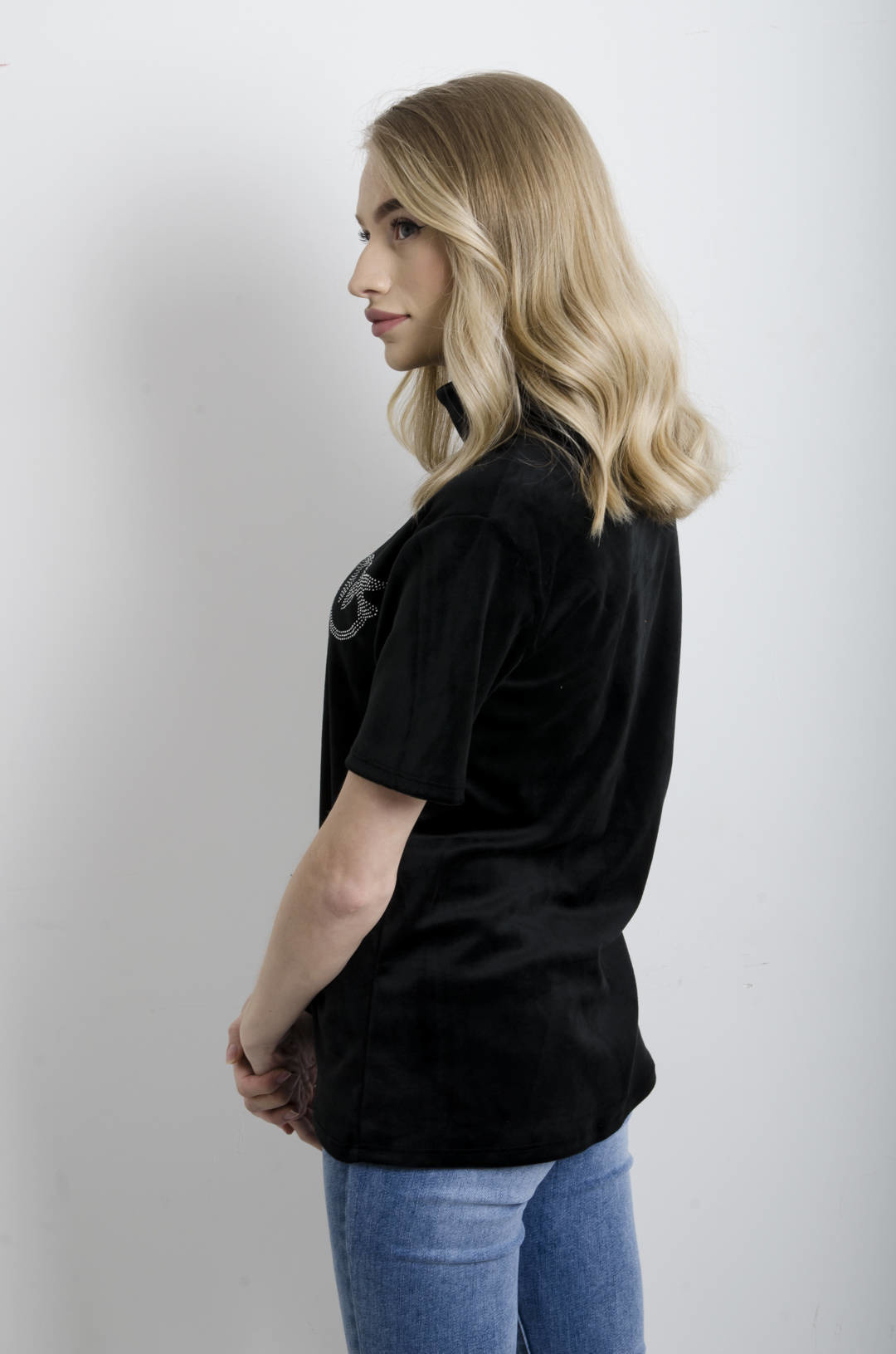 BLUZKA WELUROWA ZE STÓJKĄ- CZARNA