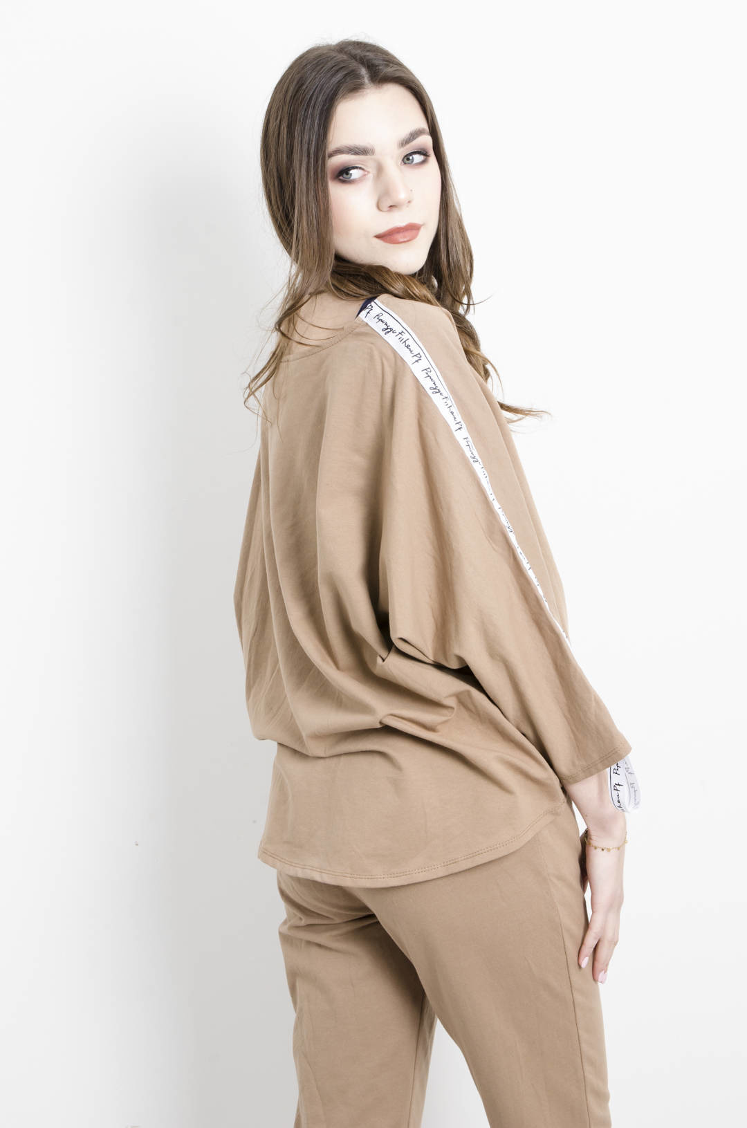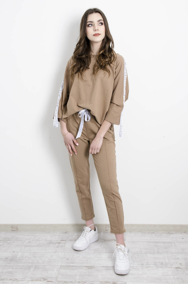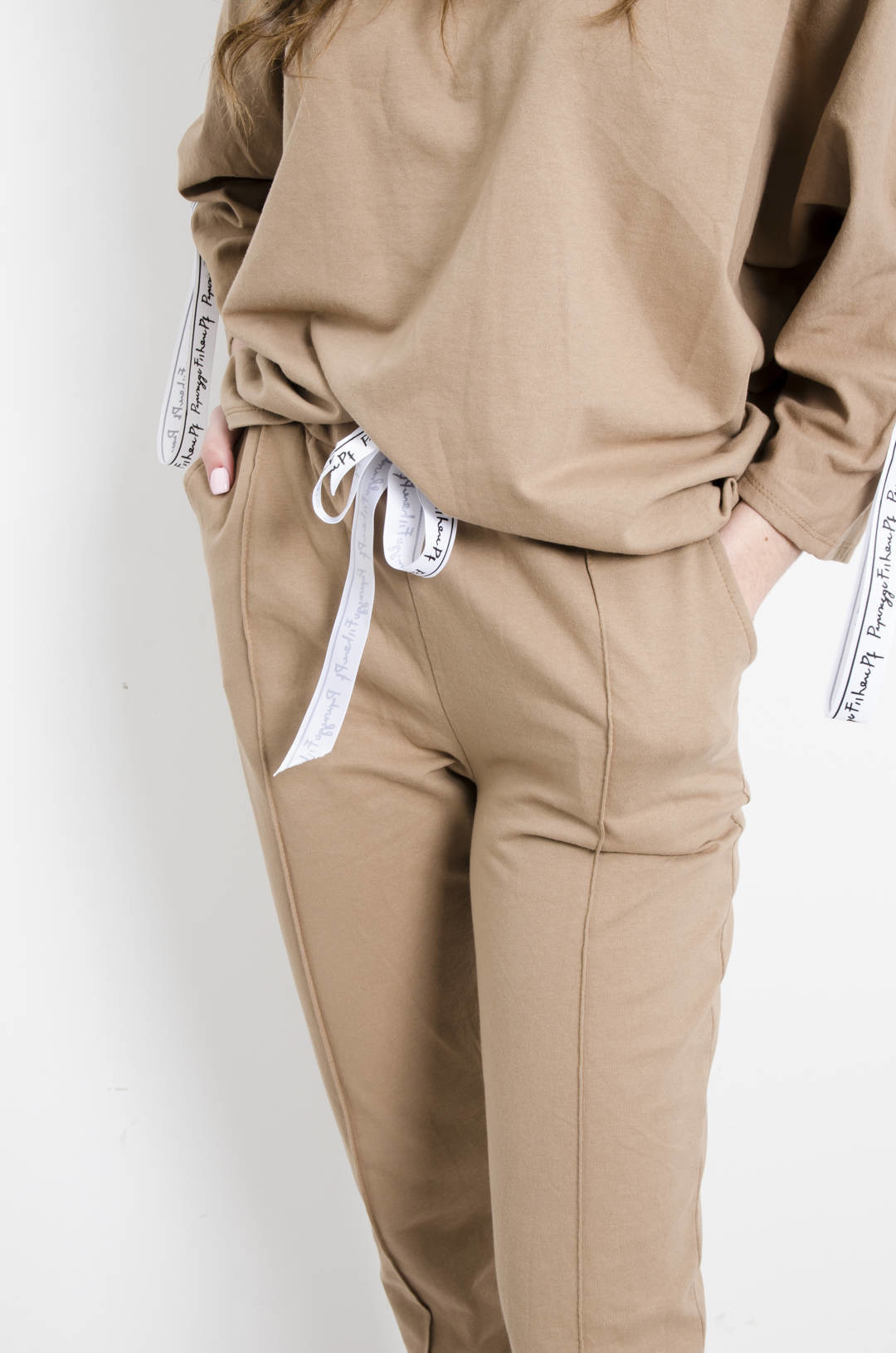 KOMPLET BAWEŁNIANY BRĄZOWY Z LAMPASEM