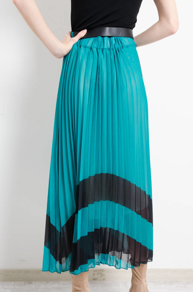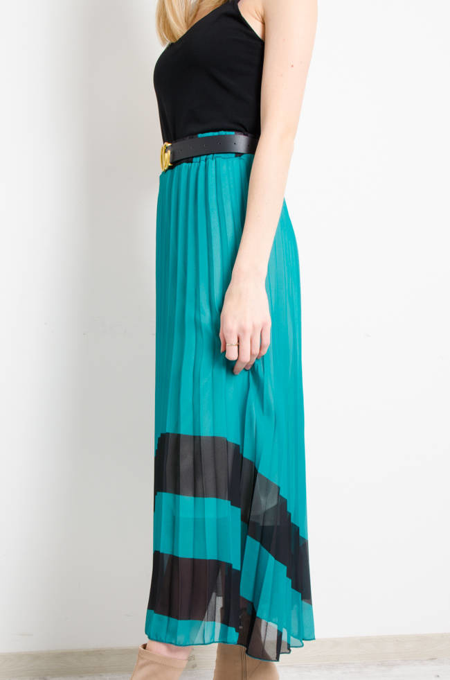 SPÓDNICA PLISOWANA Z PASKIEM - ZIELONA