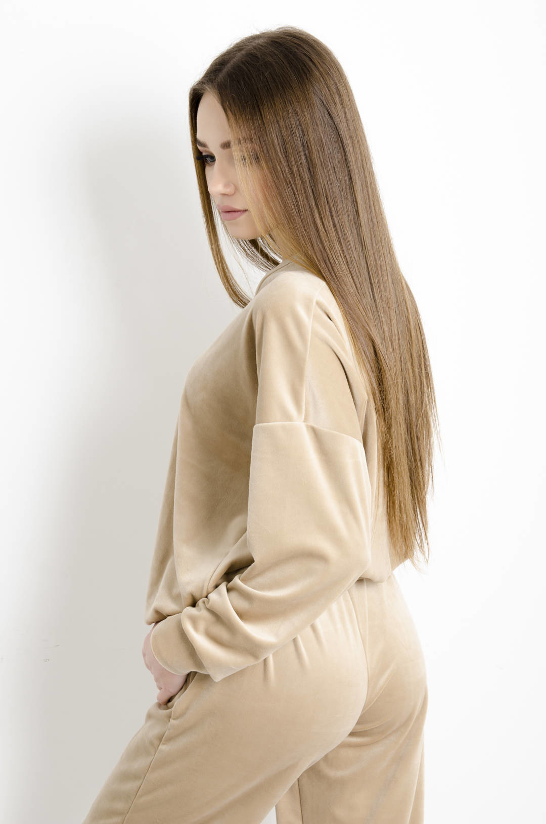 KOMPLET DRESOWY WELUROWY BEŻOWY