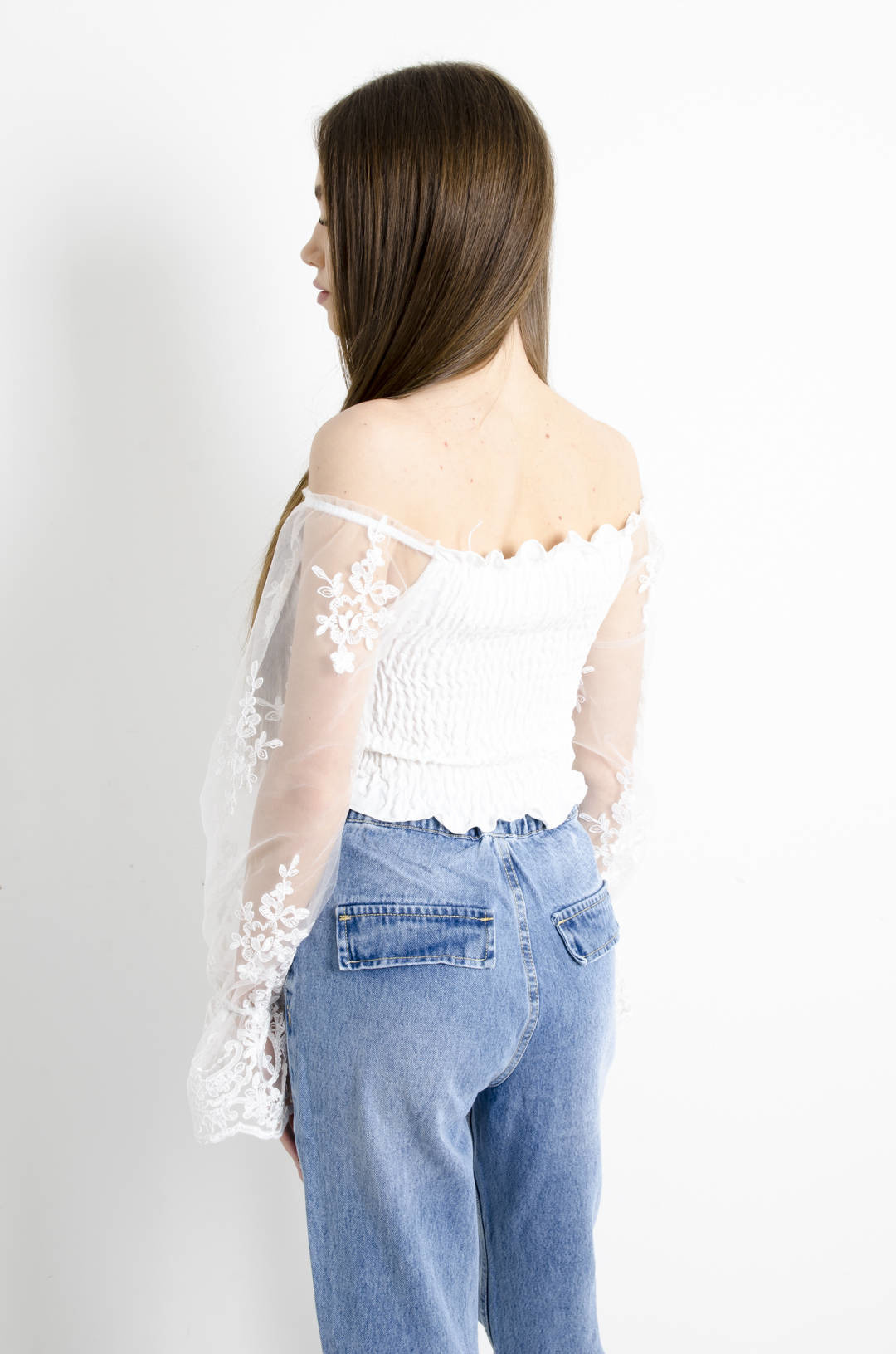 BIAŁA BLUZKA HISZPANKA Z TIULOWYMI RĘKAWAMI