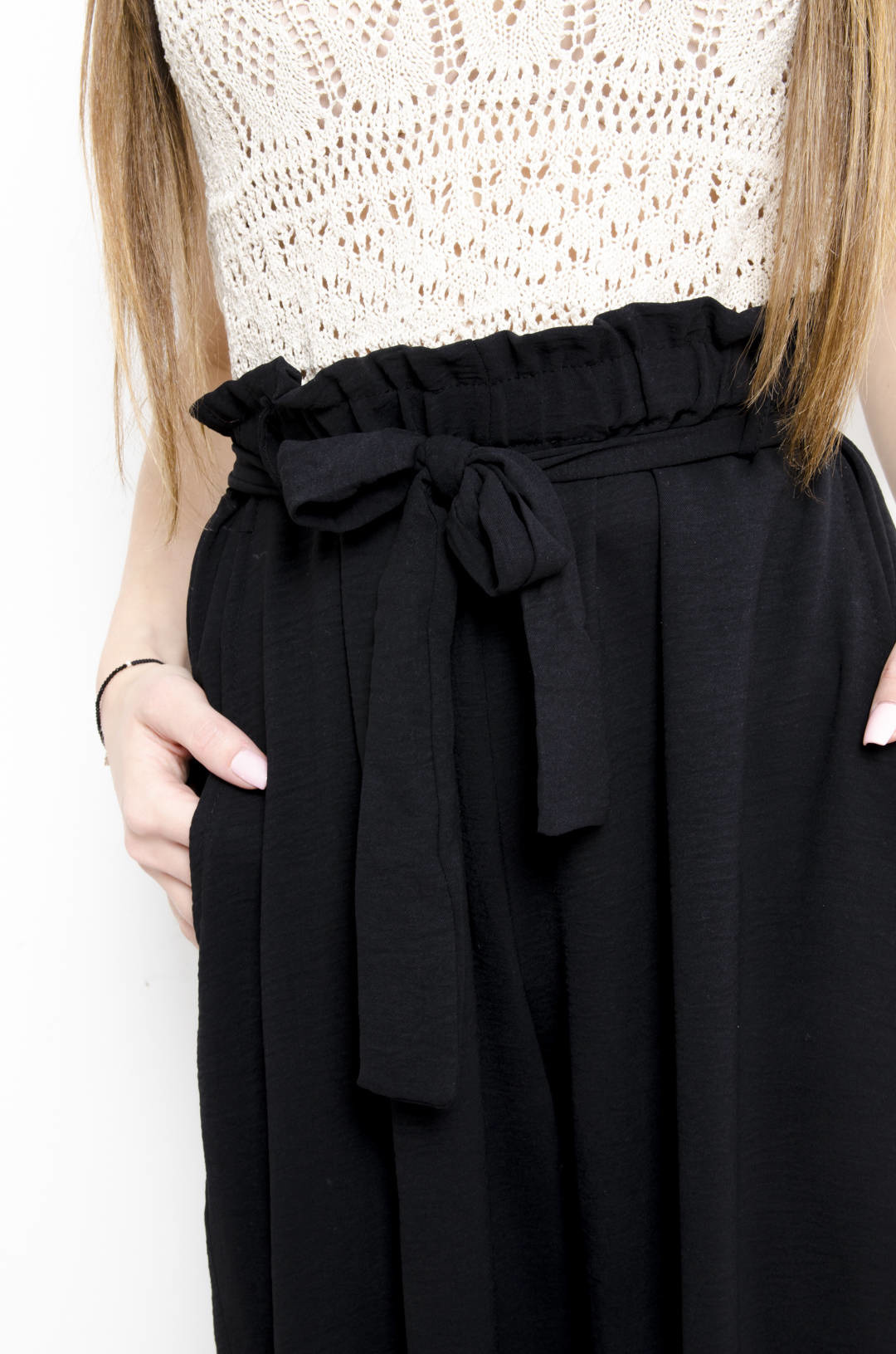SPODNIE MATRIAŁOWE WIĄZANE W PASIE CZARNE