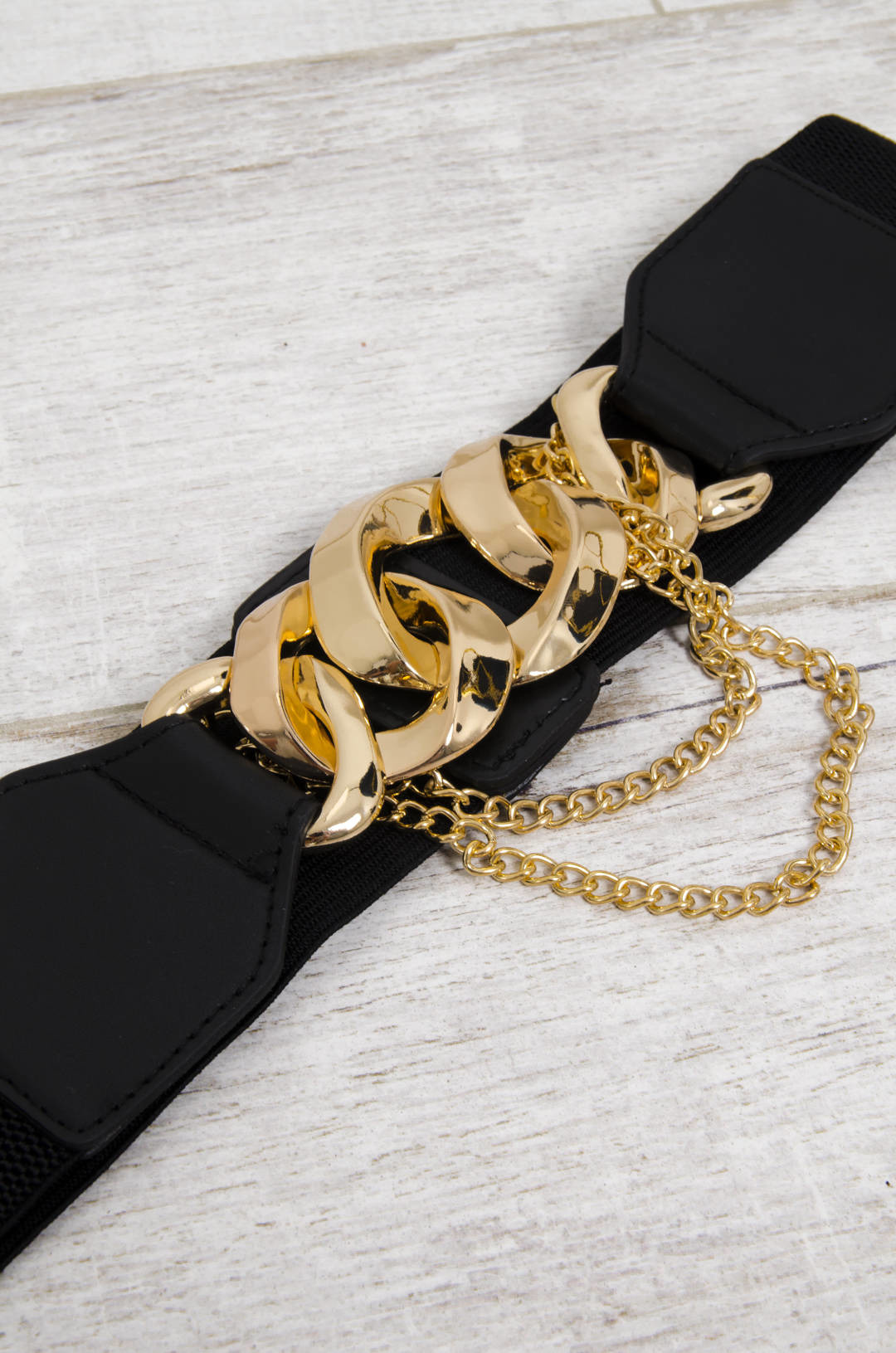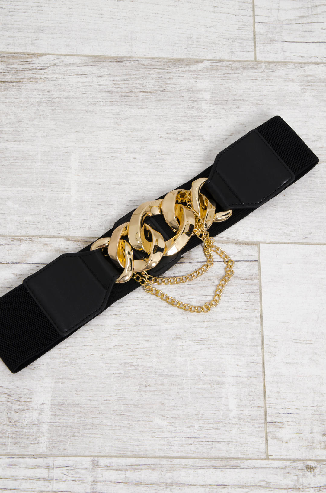 PASEK CZARNY NA GUMIE Z ŁAŃCUCHEM