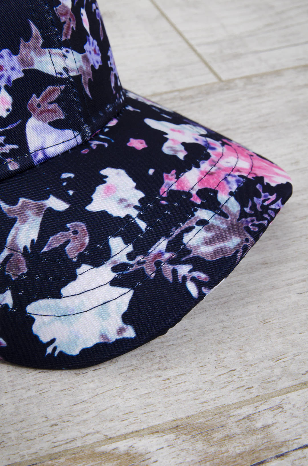 CZAPKA Z DASZKIEM W KWIATY- GRANATOWA