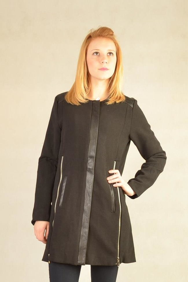 Elegancki płaszcz z kieszeniami zapinanymi na zamek, które są obszyte skórą ekologiczną. Płaszcz będzie idealny na chłodniejsze wieczory.