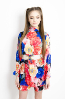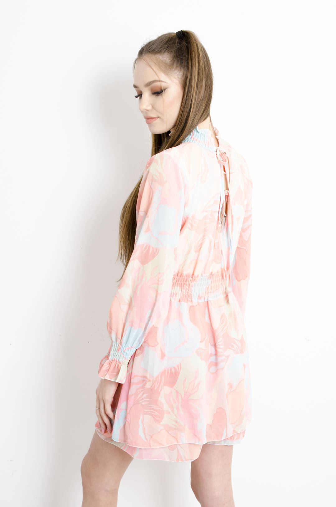 SUKIENKA-KOMBINEZON W KWIATY - RÓŻOWA
