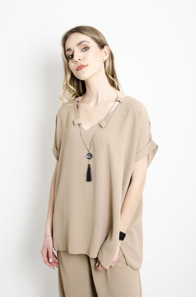 KOMPLET BRĄZOWY Z OZDOBNYM WISIORKIEM