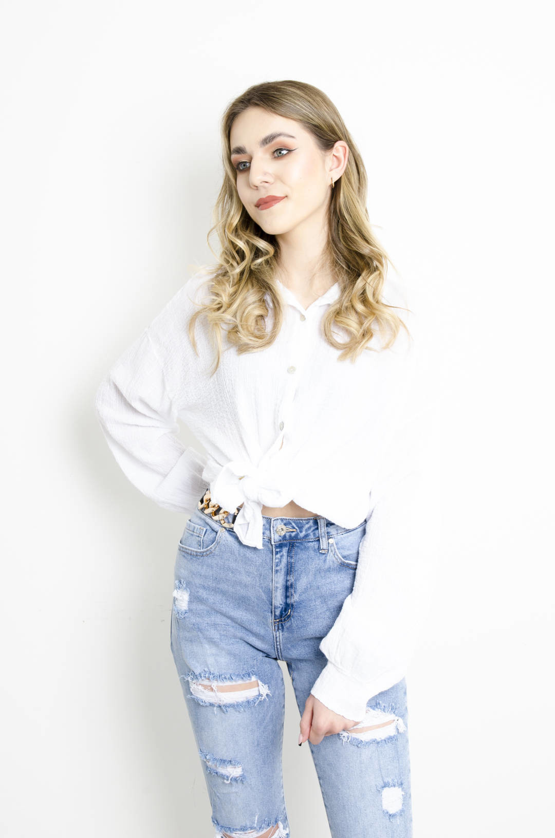 KOSZULA MUŚLINOWA W KOLORZE BIAŁYM