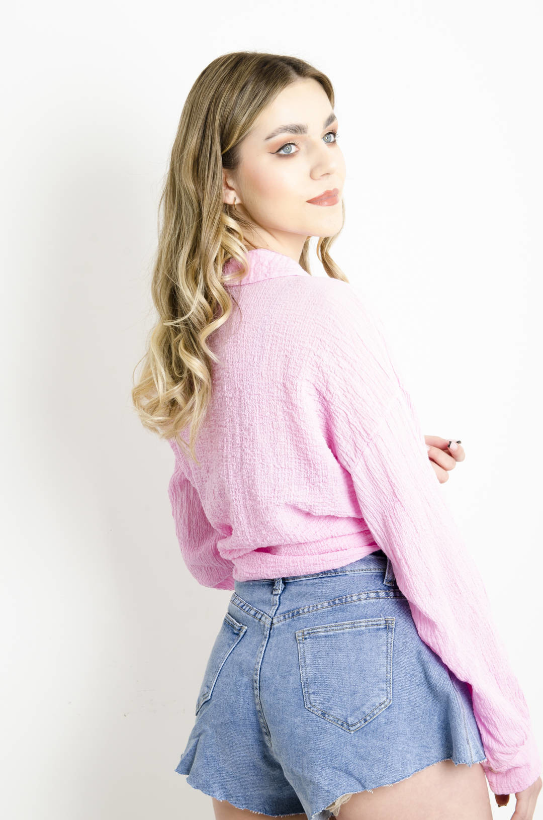 KOSZULA MUŚLINOWA W KOLORZE RÓŻOWYM