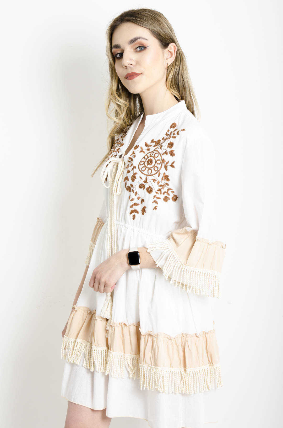 SUKIENKA BIAŁA BOHO Z HAFTEM