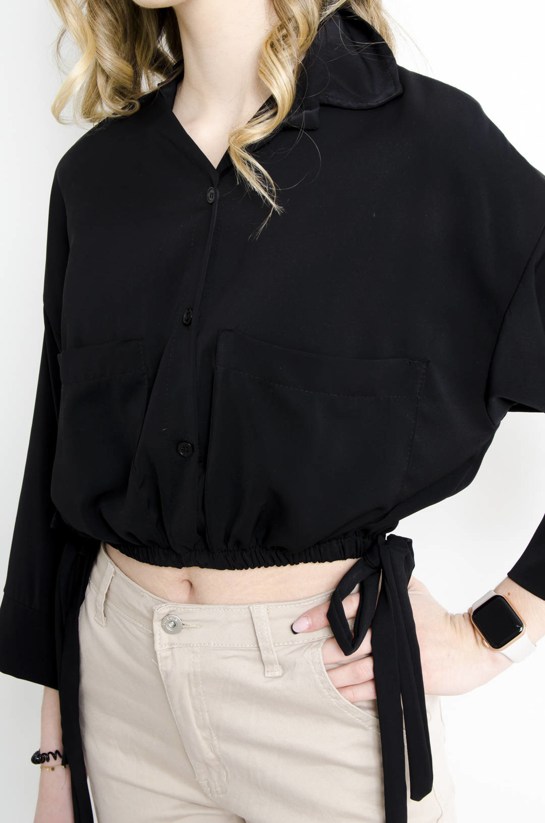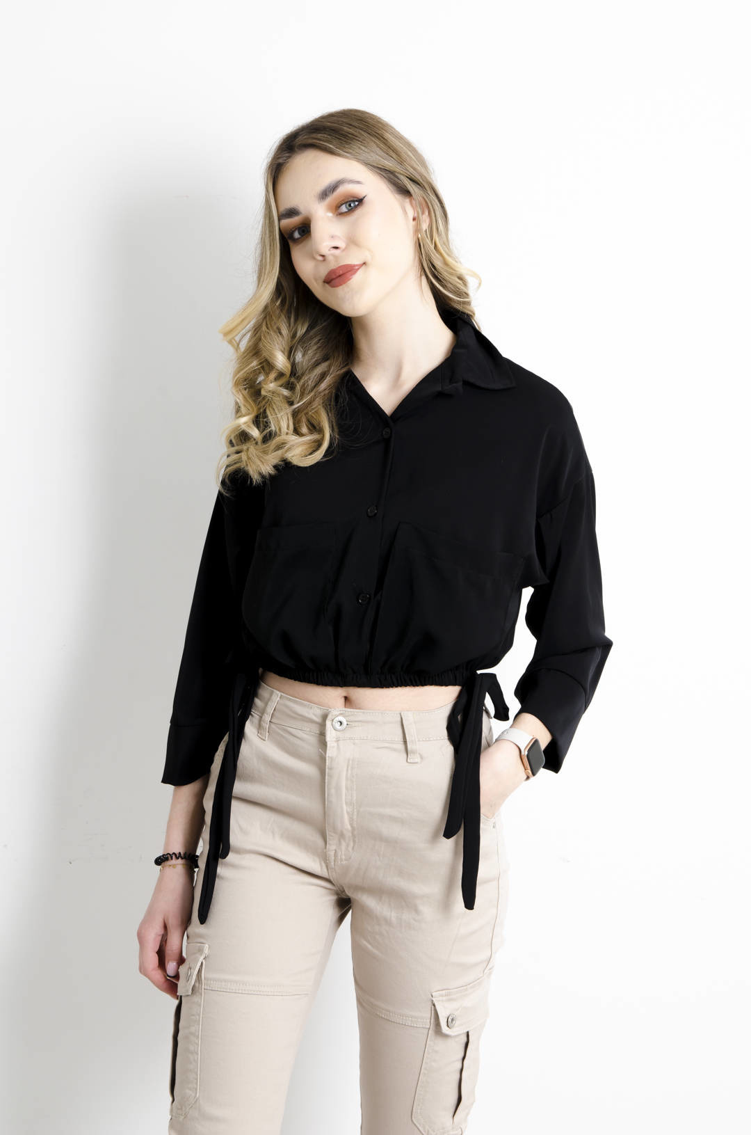 KOSZULA KRÓTKA ZE ŚCIĄGACZEM- CZARNA