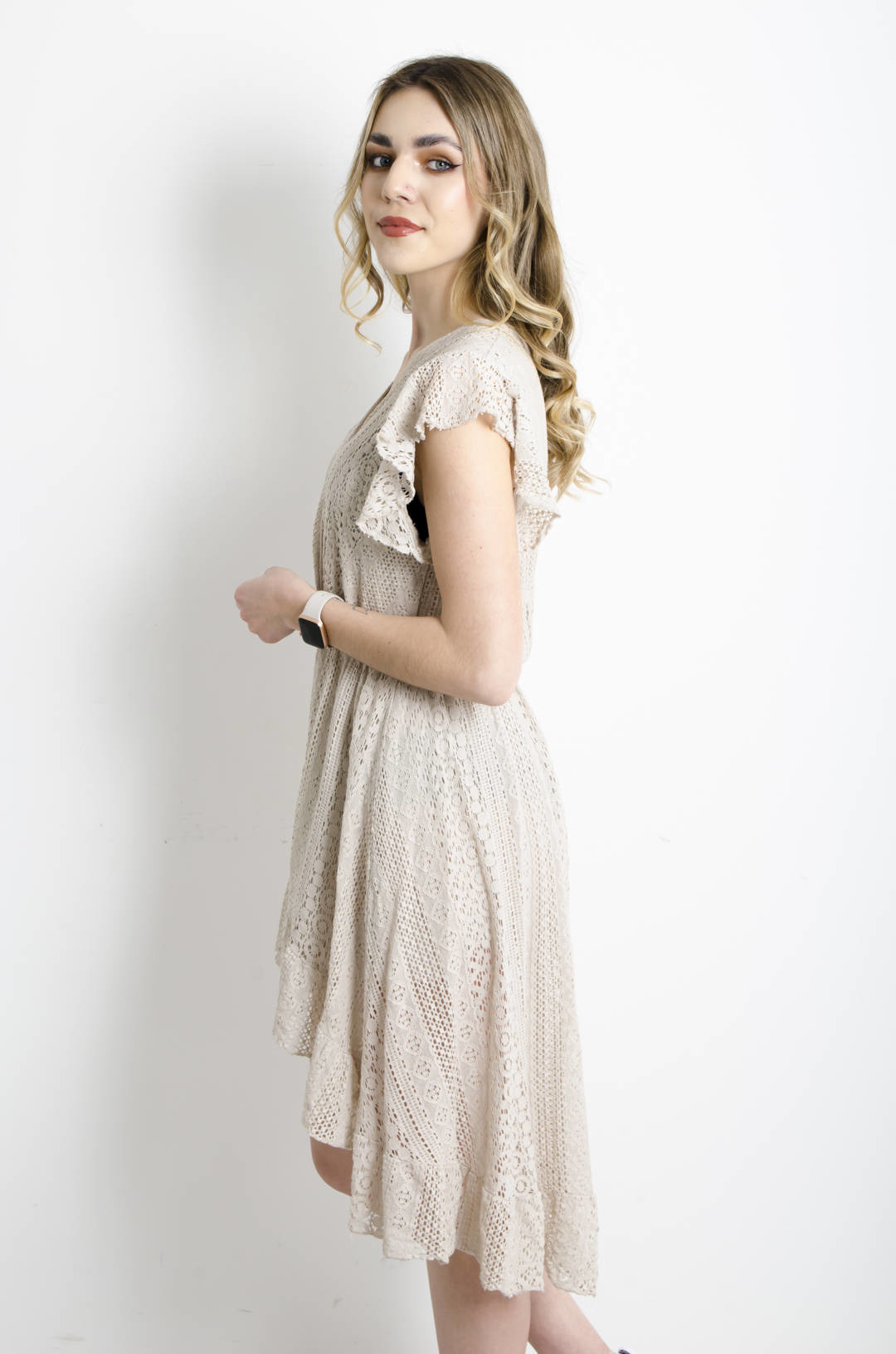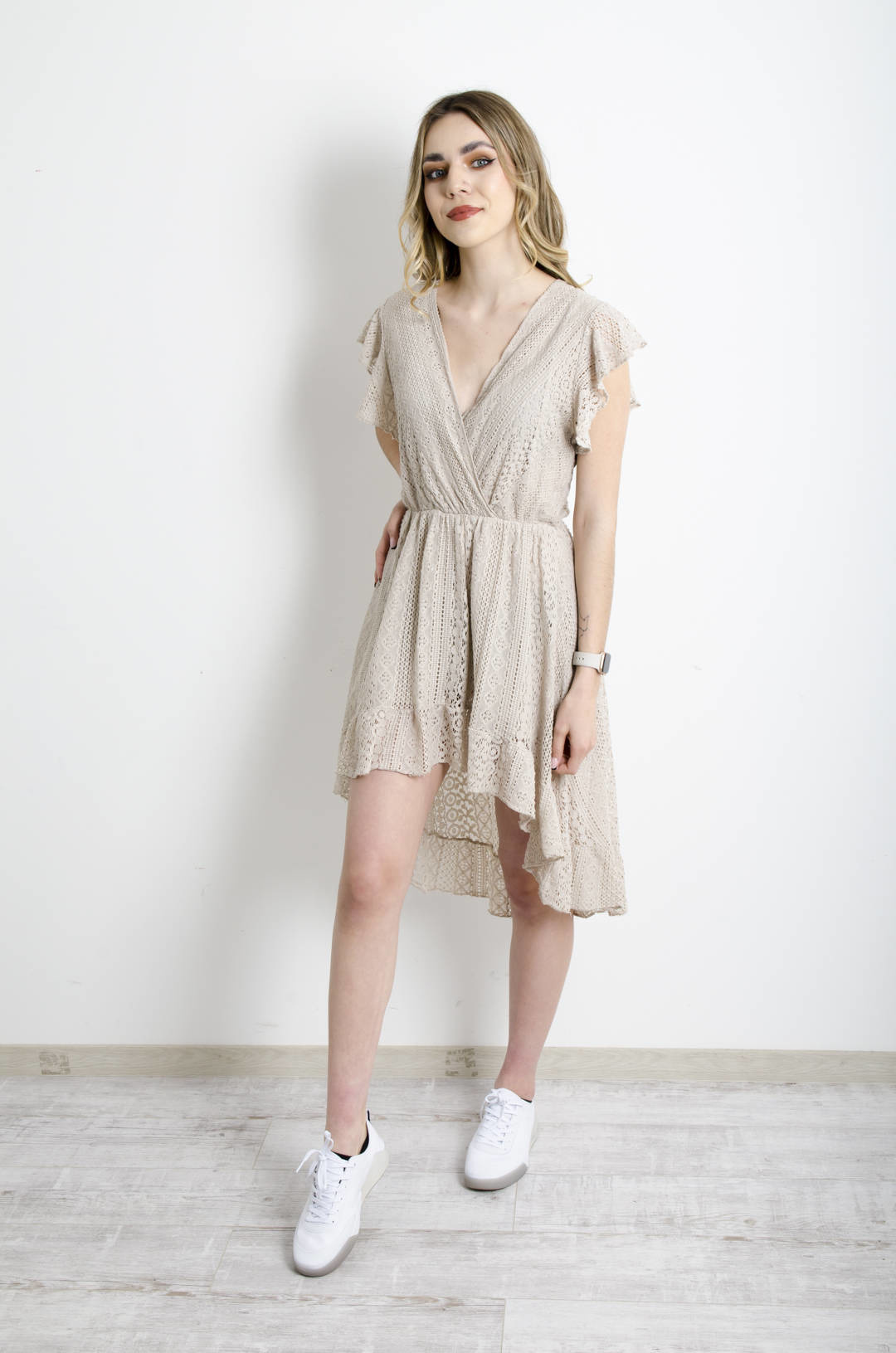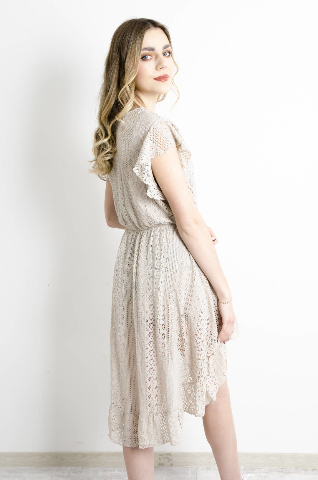 SUKIENKA KORONKOWA Z PRZEDŁUŻANYM TYŁEM - BEŻOWA