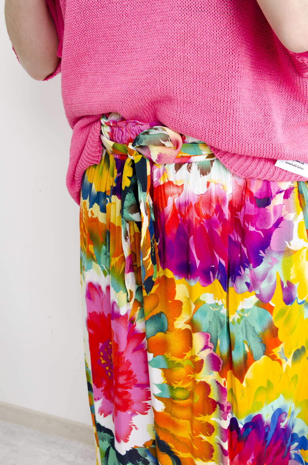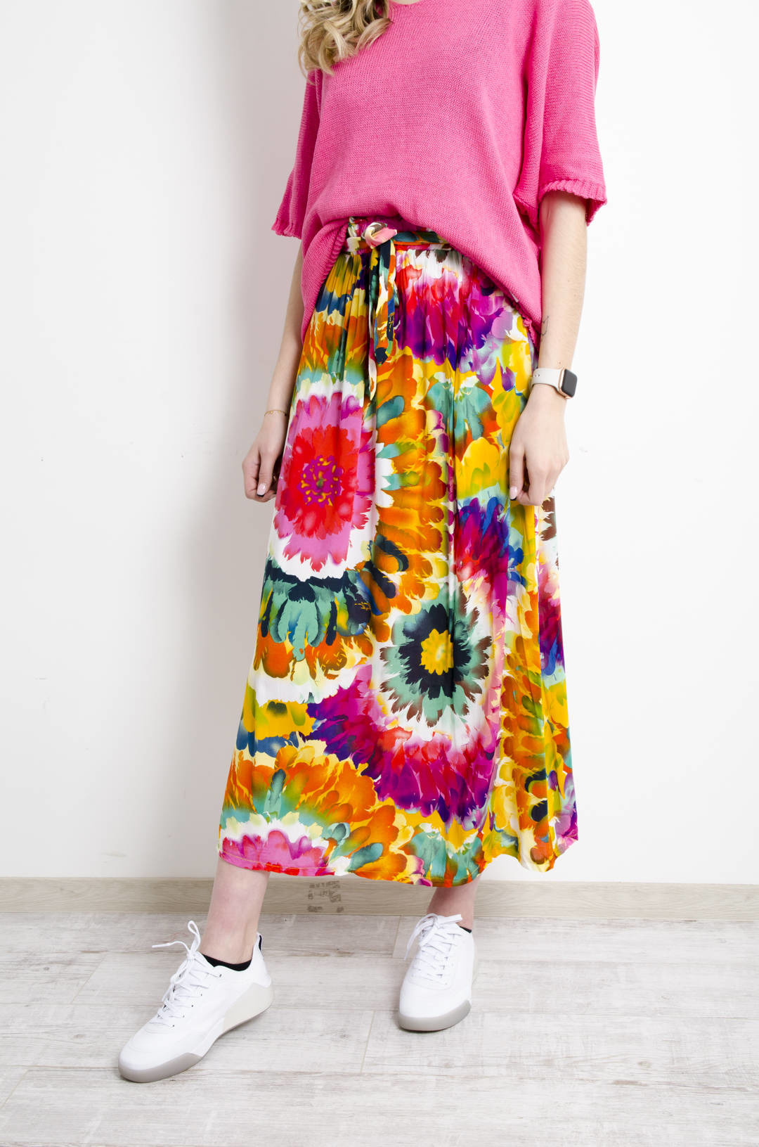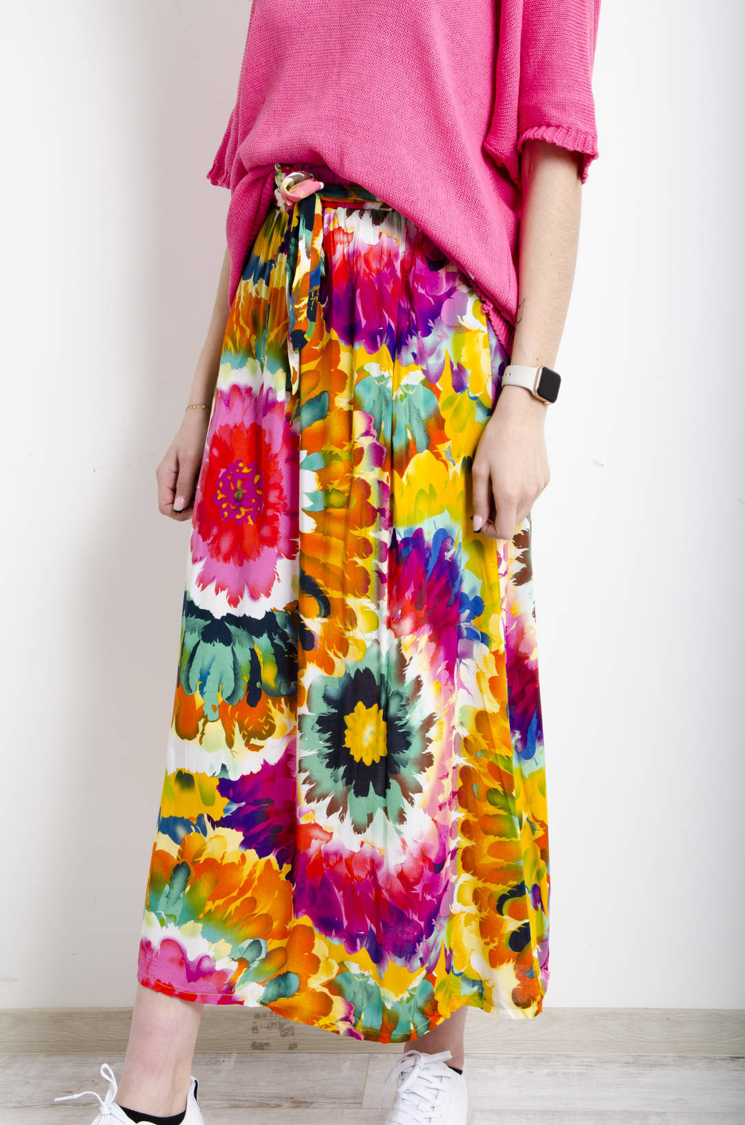 SPÓDNICA MAXI WZORZYSTA W KWIATY WIĄZANA W PASIE- POMARAŃCZOWA