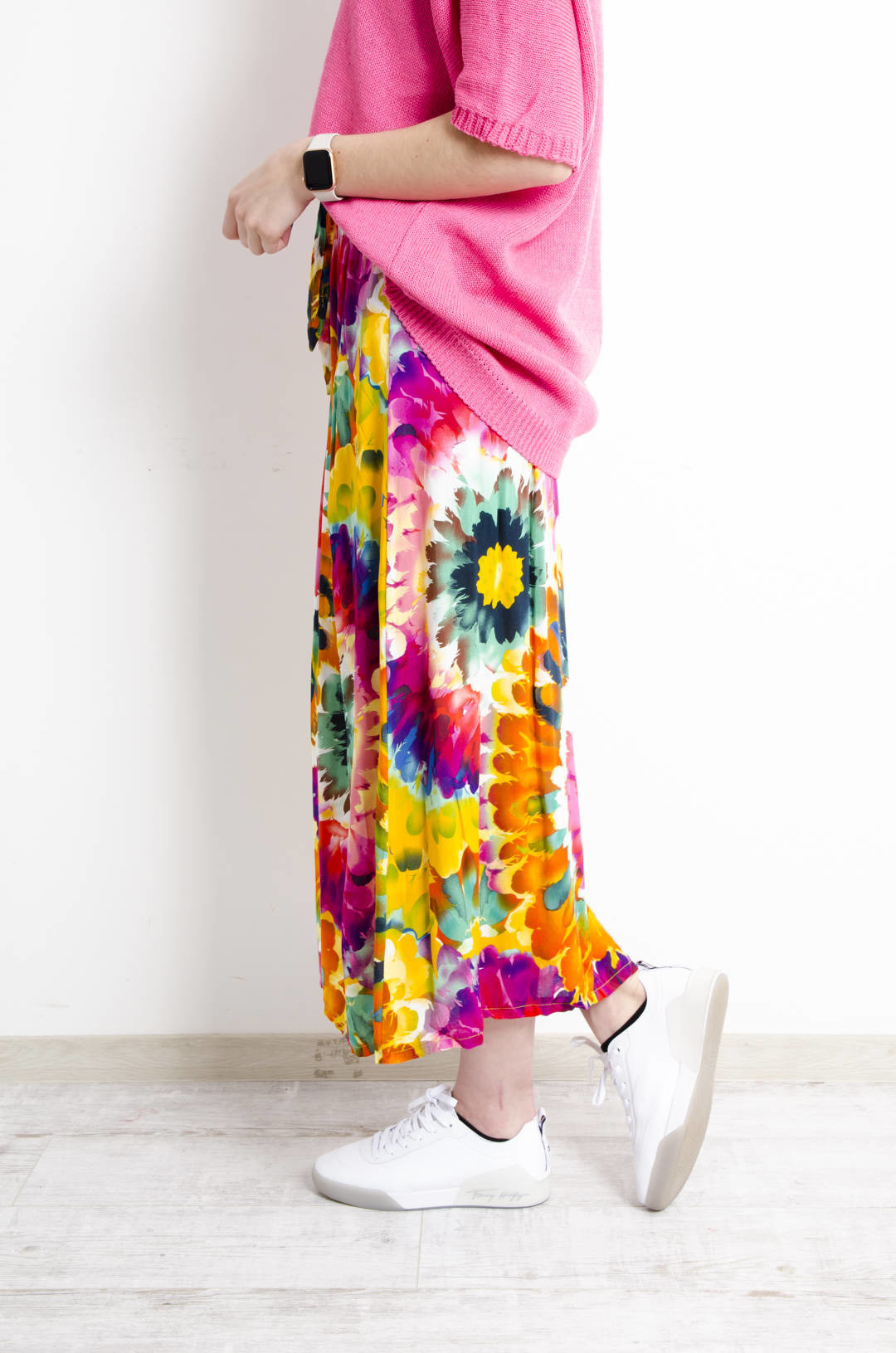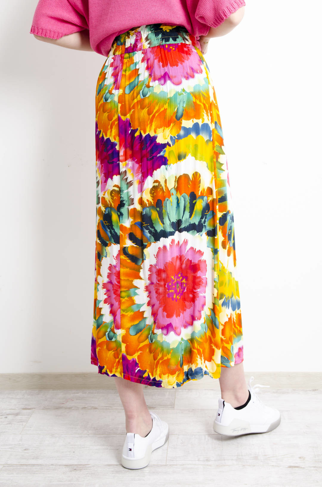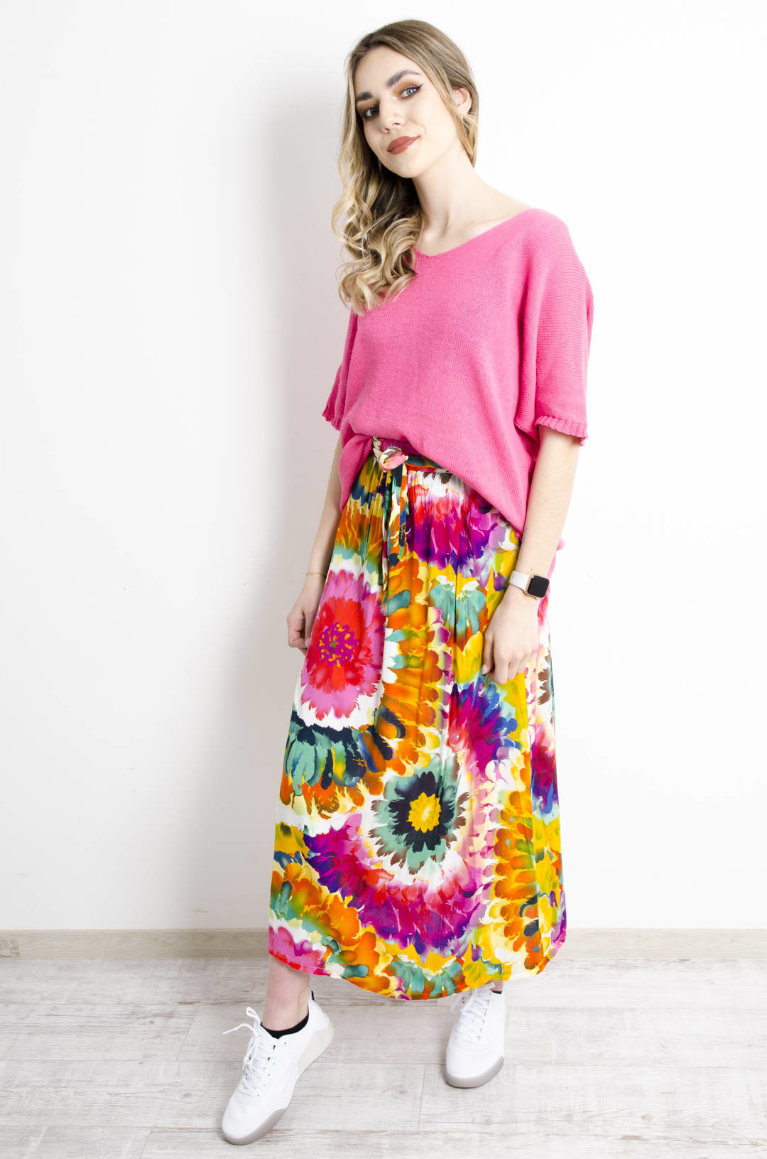 SPÓDNICA MAXI WZORZYSTA W KWIATY WIĄZANA W PASIE- POMARAŃCZOWA
