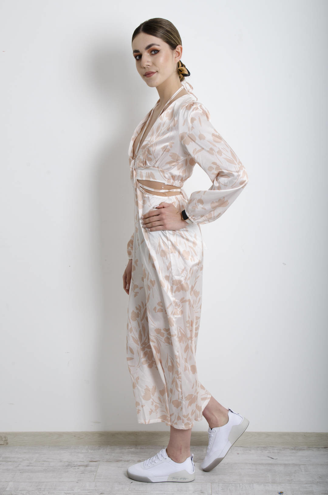 SUKIENKA BIAŁA W KWIATY Z WYCIĘCIEM