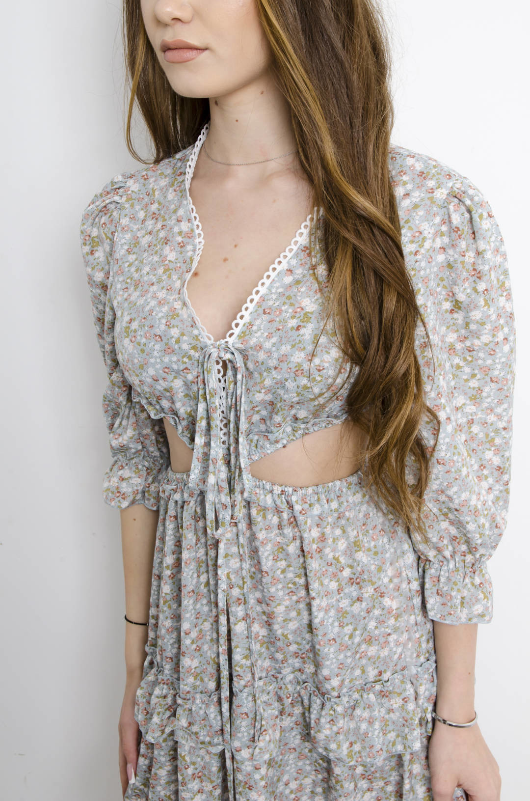 SUKIENKA ZIELONA W KWIATY Z WYCIĘCIEM