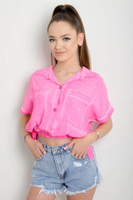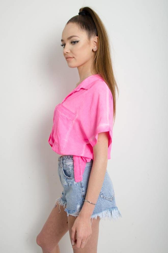 KOSZULA WIĄZANA Z KIESZENIAMI - RÓŻOWA