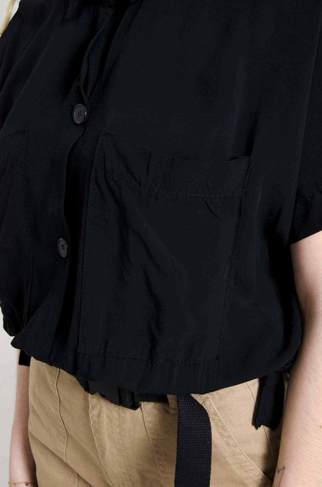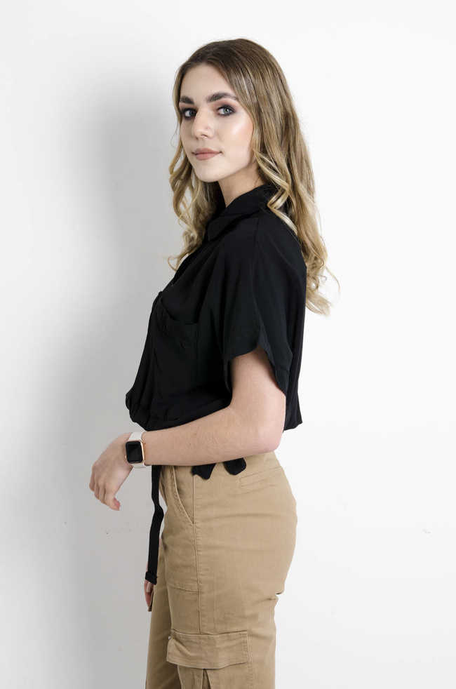 KOSZULA WIĄZANA Z KIESZENIAMI - CZARNA