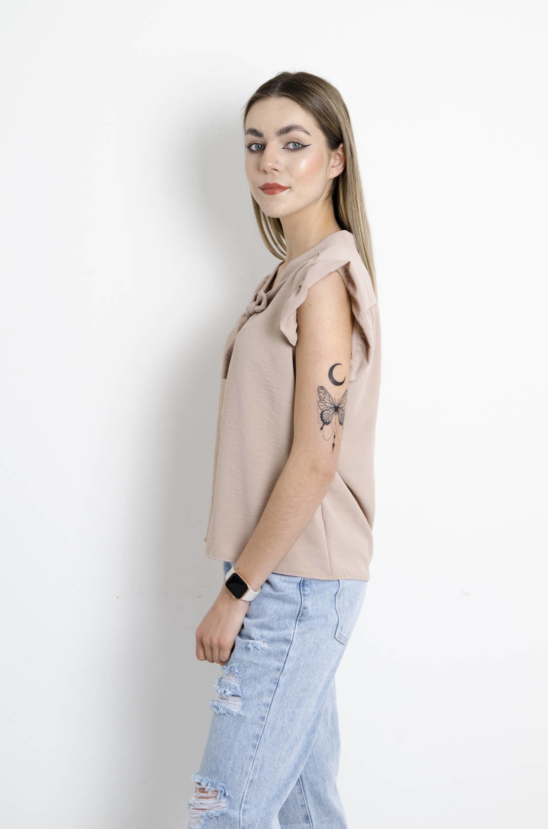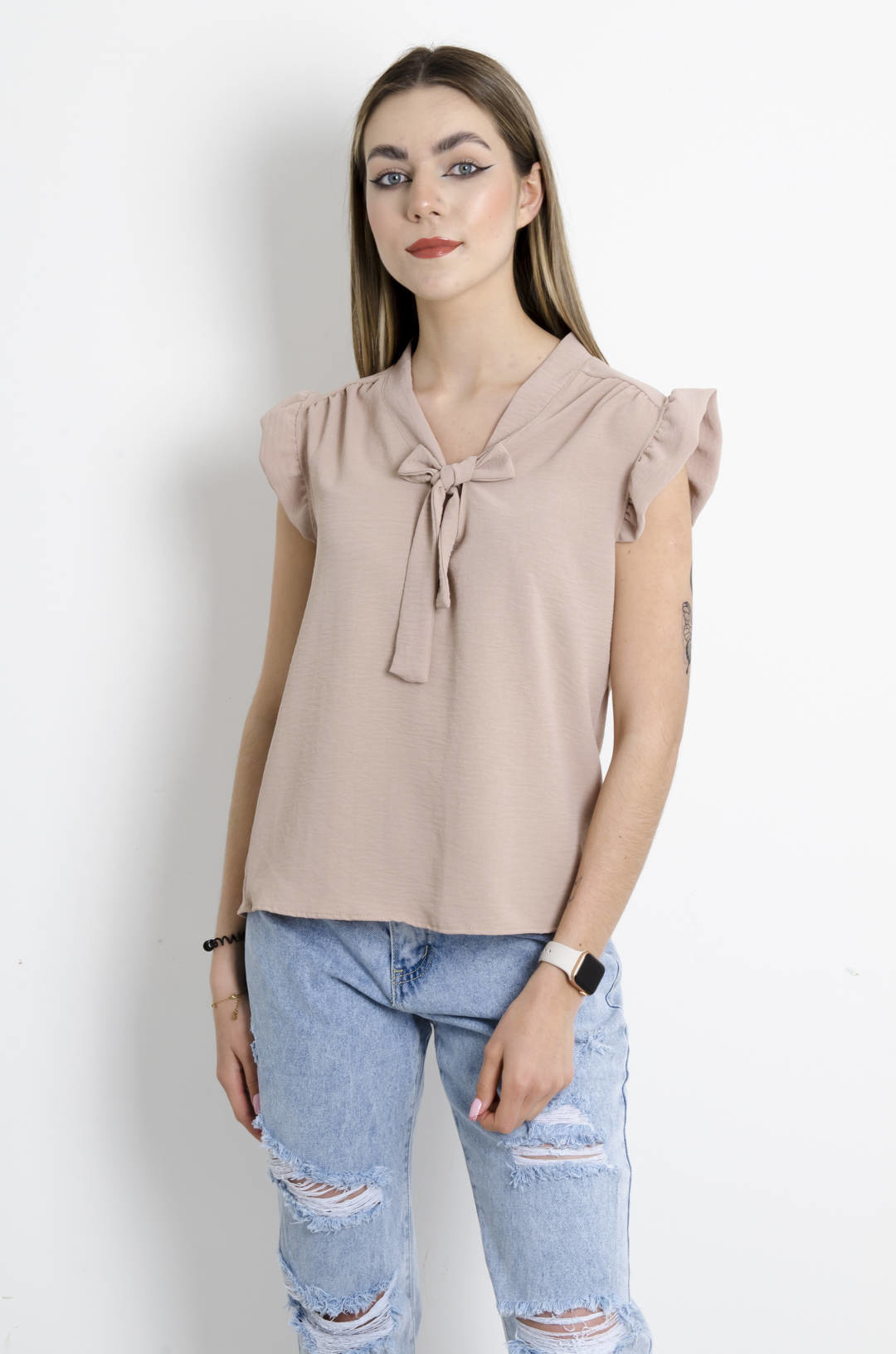 BLUZKA Z WIĄZANIEM BEŻOWA