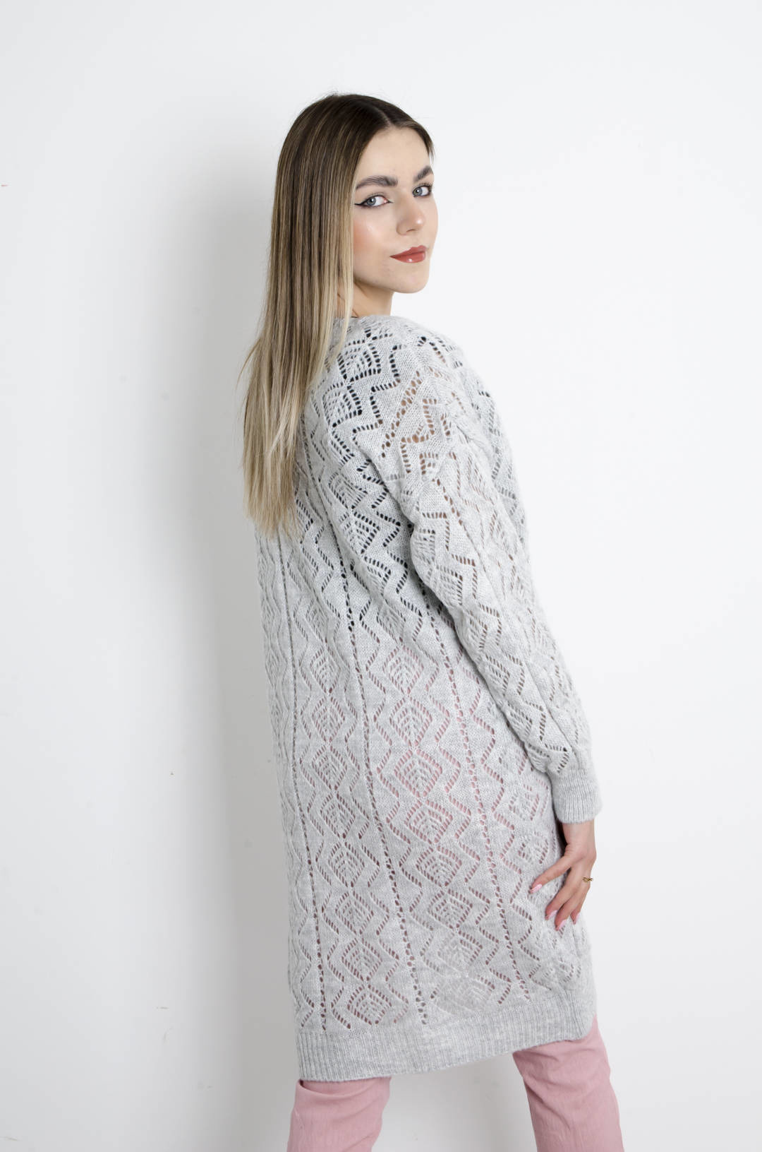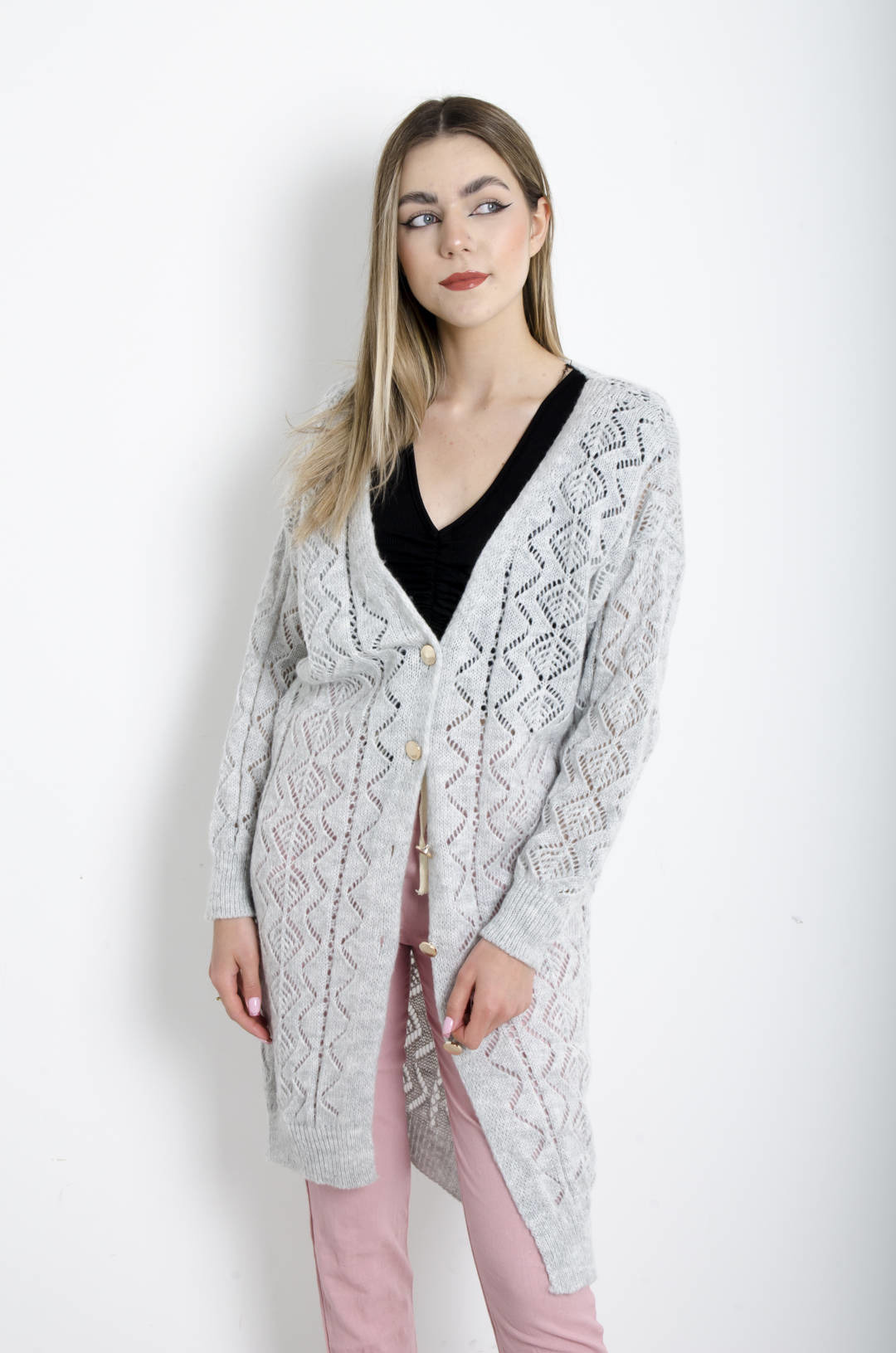 NARZUTA DŁUGA AŻUROWA ZAPINANA NA GUZIKI- SZARA