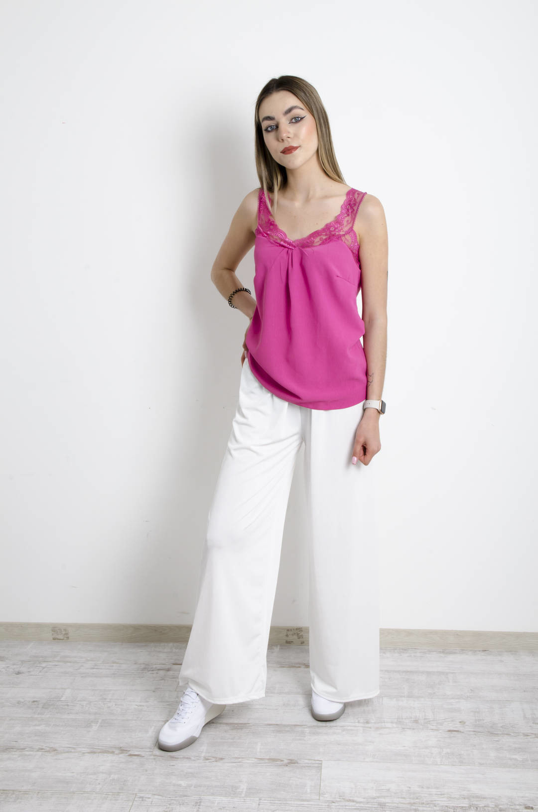BIELIŹNIANY TOP Z KORONKĄ - RÓŻOWY