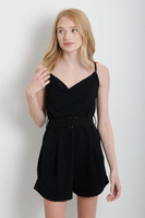 KOMBINEZON NA CIENKICH RAMIĄCZKACH Z PASKIEM- CZARNY