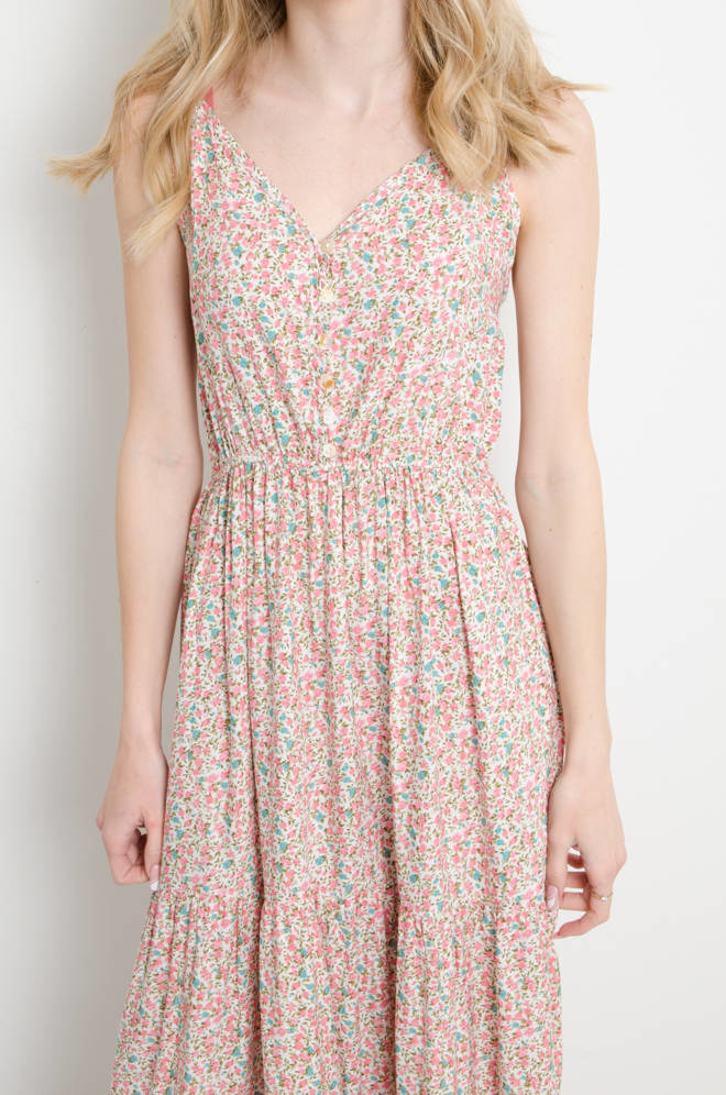SUKIENKA W KWIATY NA CIENKICH RAMIĄCZKACH MAXI - RÓŻOWA