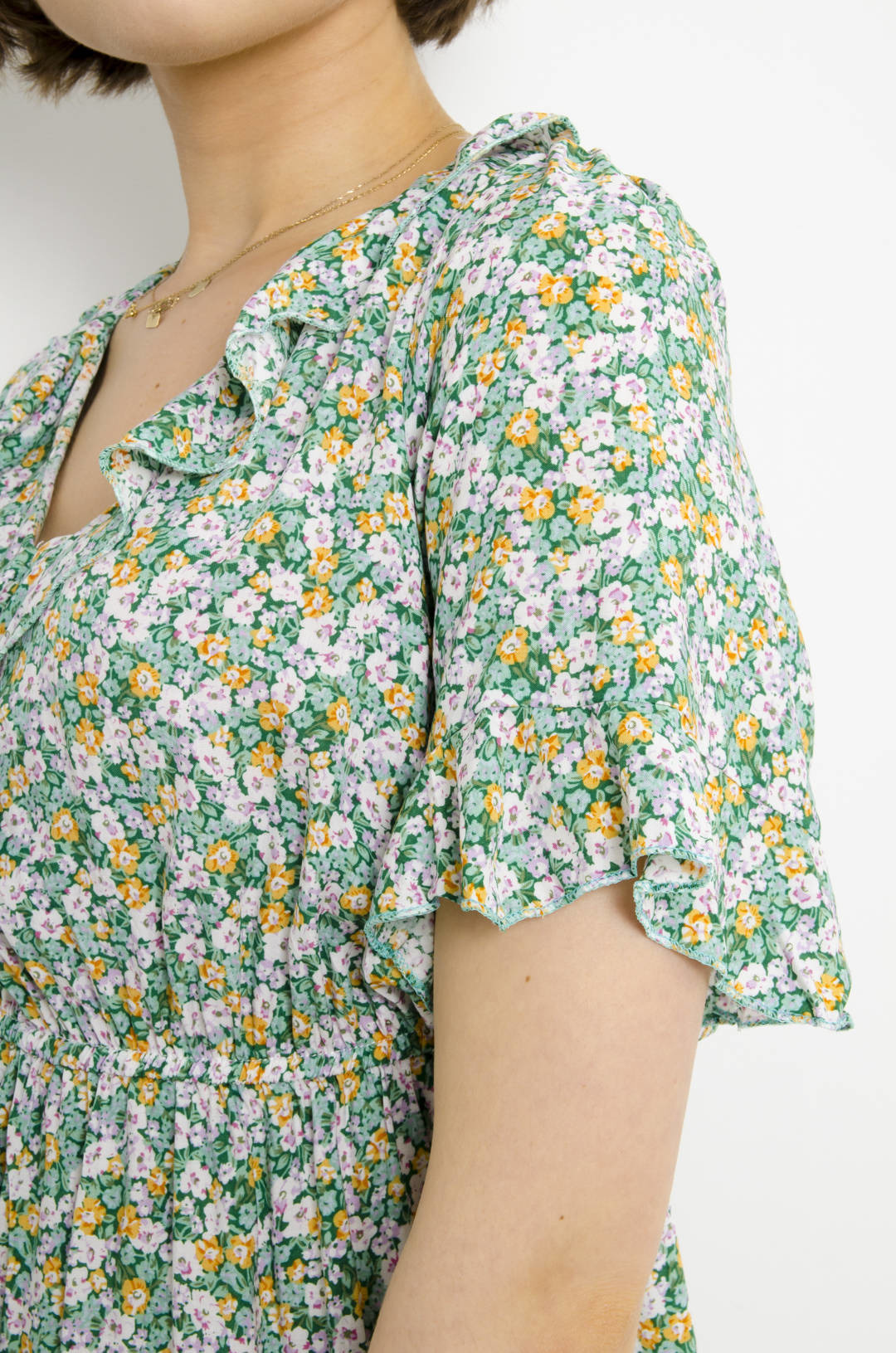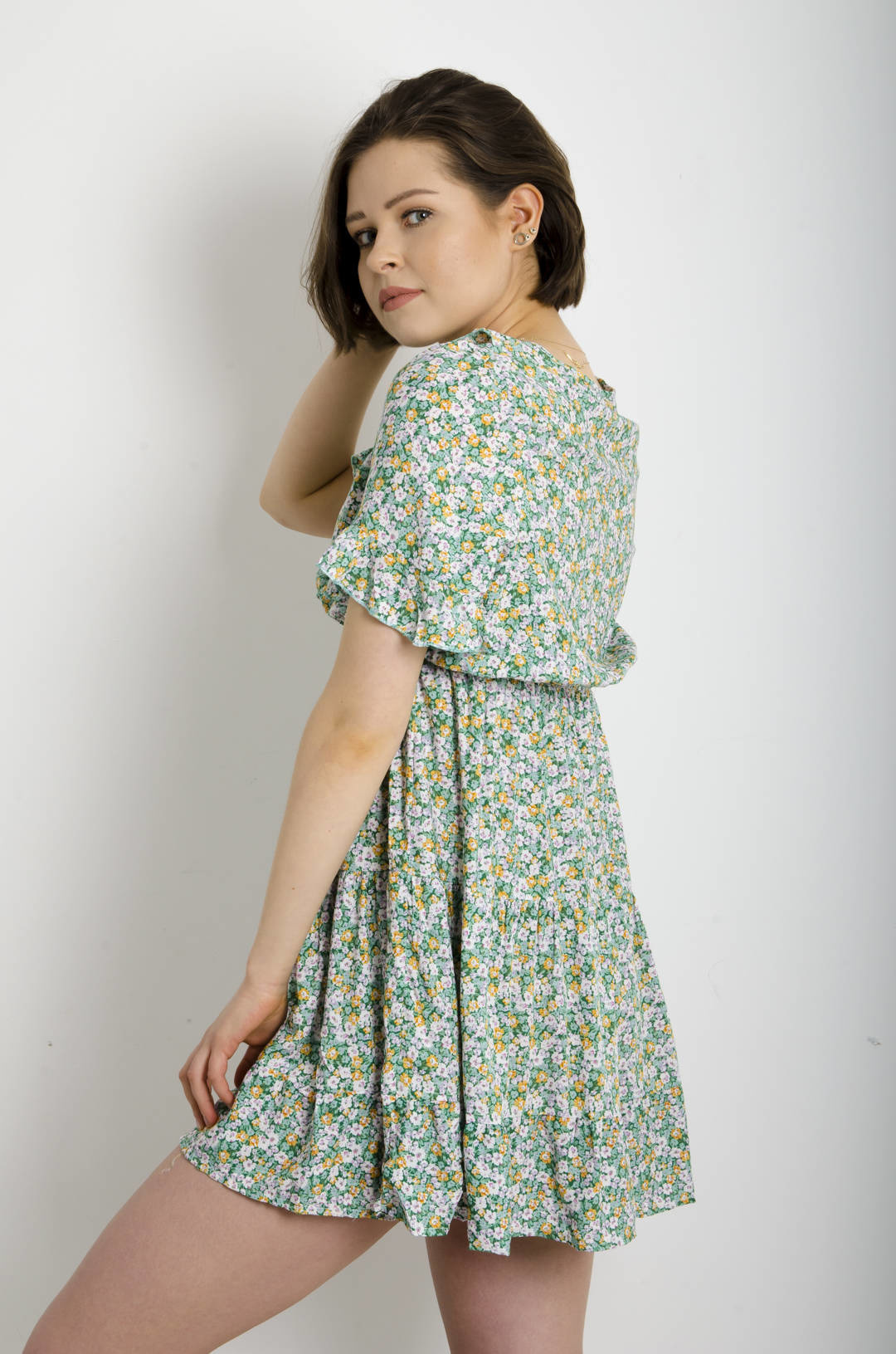 SUKIENKA MINI W KWIATY - ZIELONA