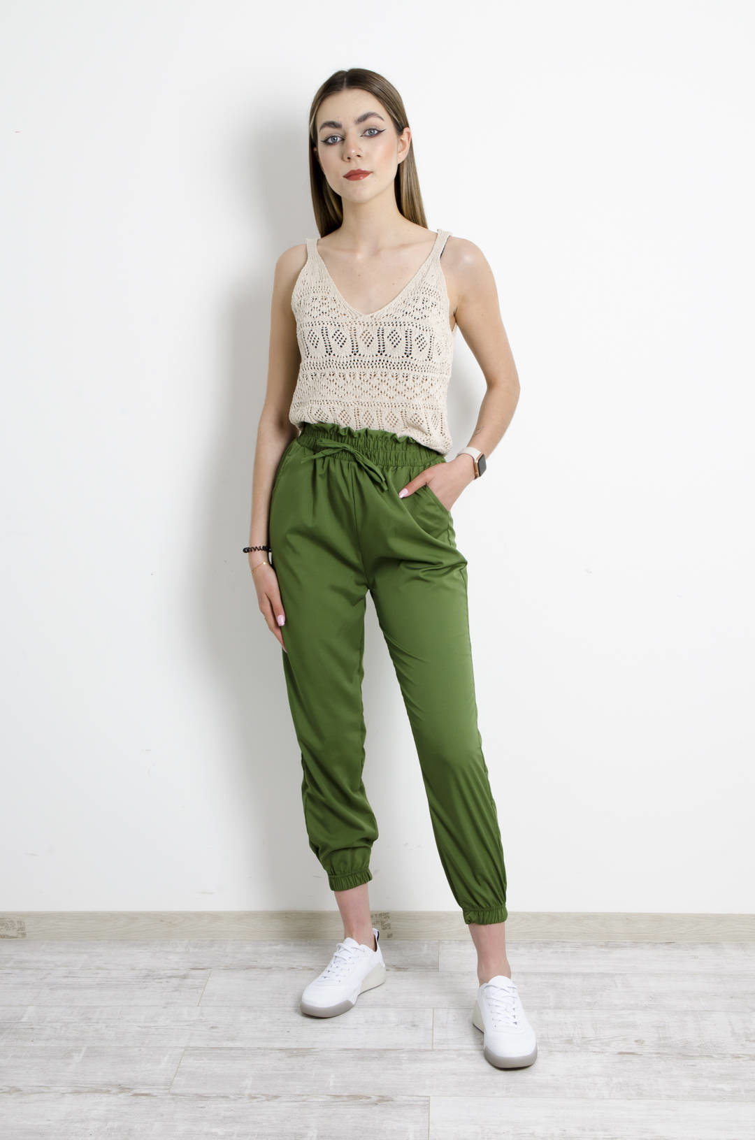 SPODNIE MATERIAŁOWE Z GUMĄ W PASIE- ZIELONE