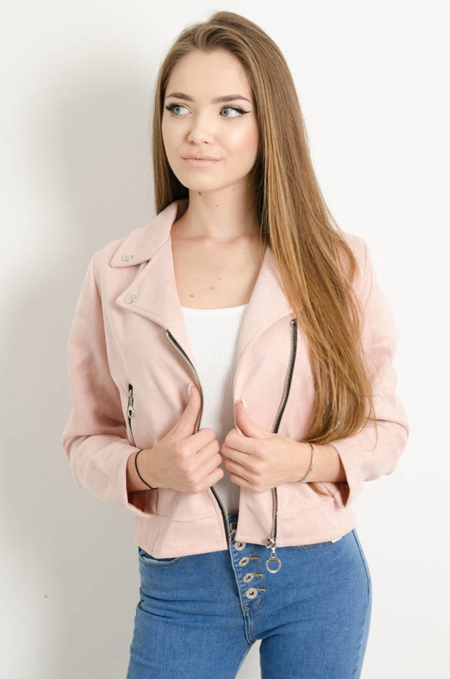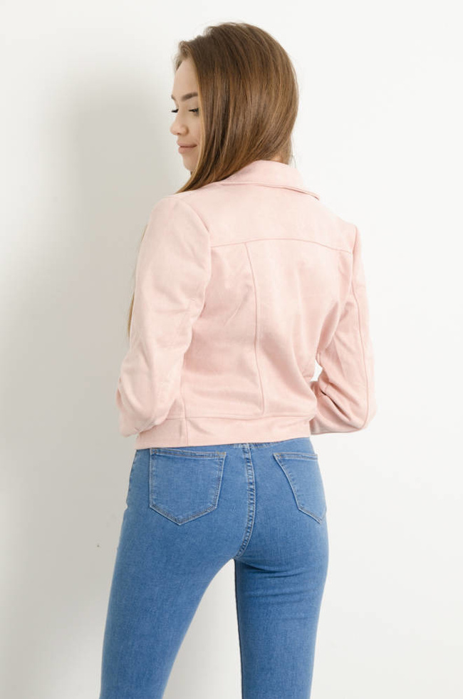 KURTKA PRZEJŚCIOWA RAMONESKA Z IMITACJI ZAMSZU- RÓŻOWA