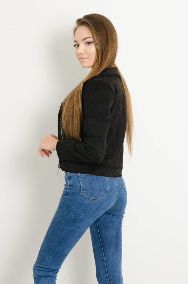KURTKA PRZEJŚCIOWA RAMONESKA Z IMITACJI ZAMSZU- CZARNA