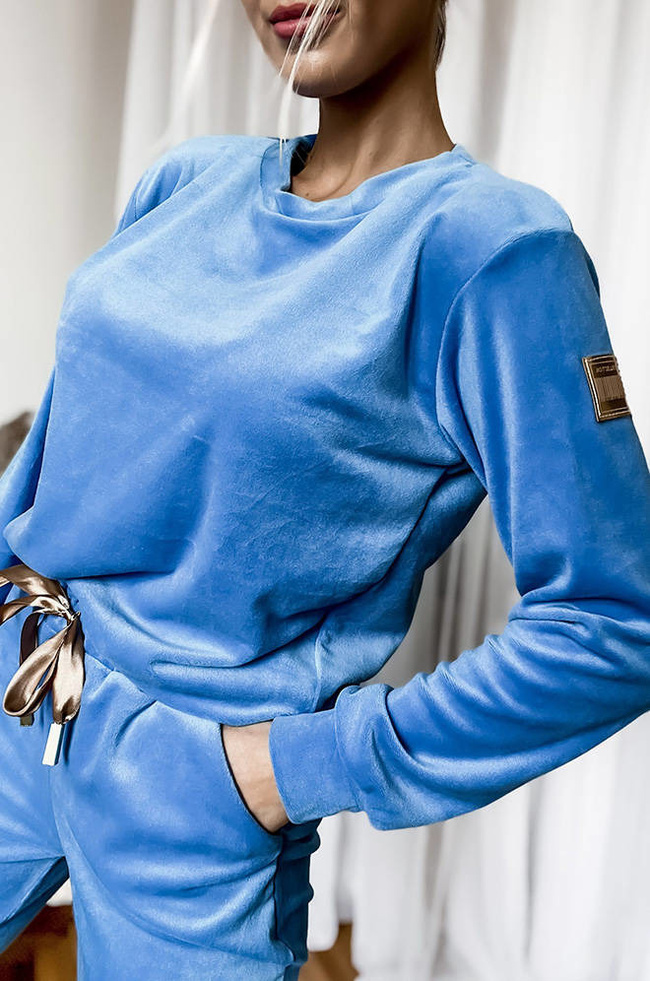 KOMPLET DRESOWY WELUROWY Z OZDOBNĄ NASZYWKĄ- NIEBIESKI