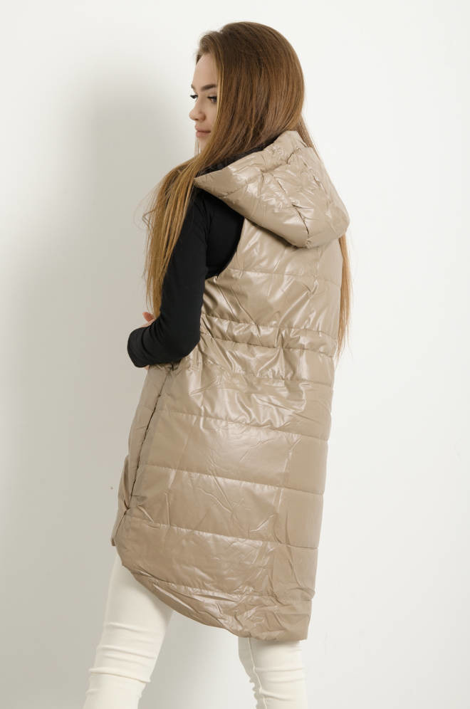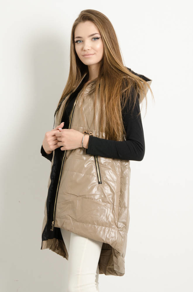 KAMIZELKA ASYMETRYCZNA Z KAPTUREM ŚCIĄGANA W PASIE- BEŻOWA