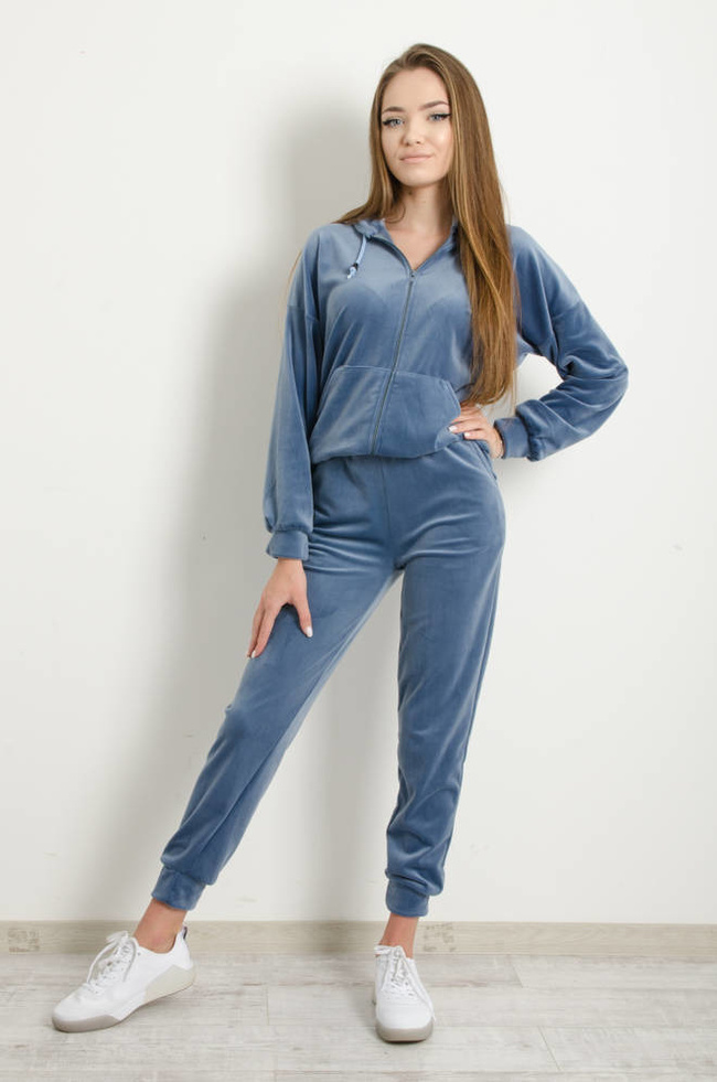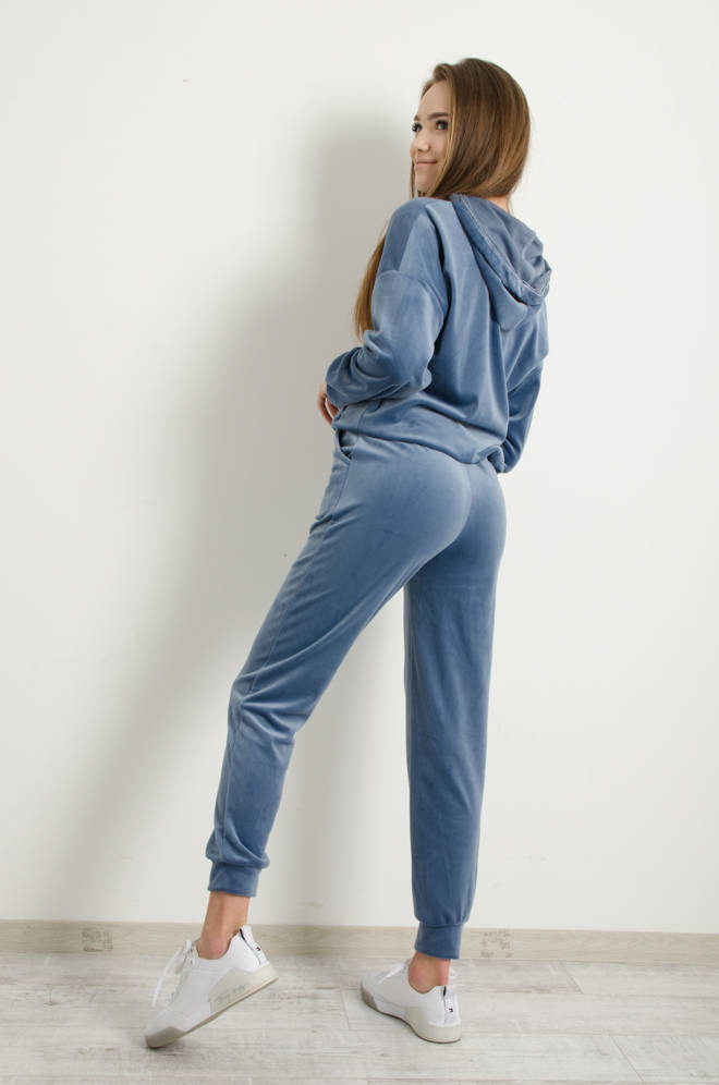 WELUROWY KOMPLET DRESOWY ROZPINANY Z KAPTUREM- NIEBIESKI