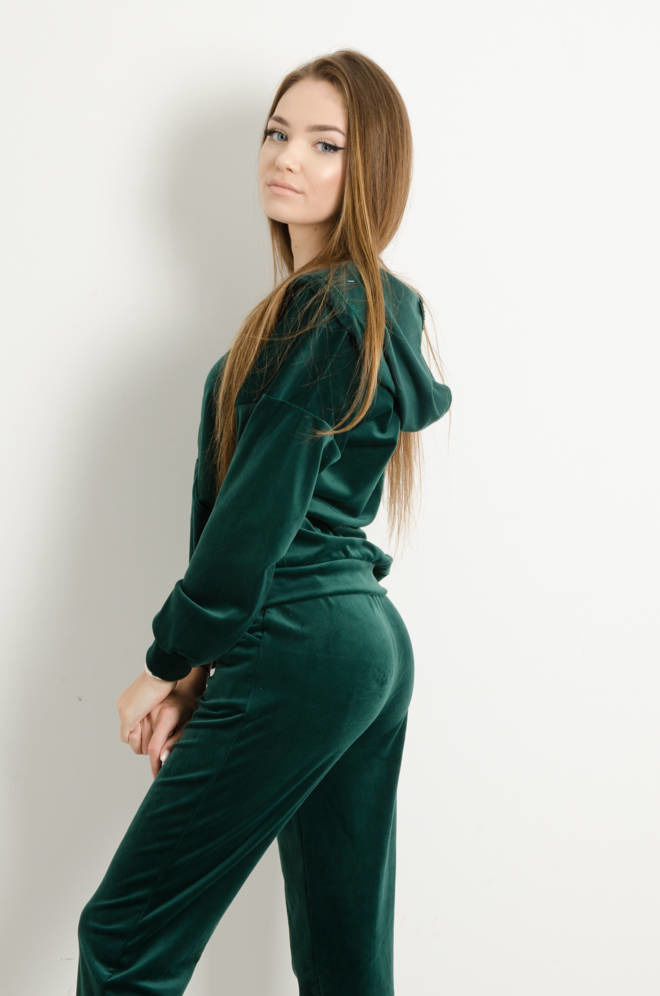 WELUROWY KOMPLET DRESOWY ROZPINANY Z KAPTUREM- ZIELONY