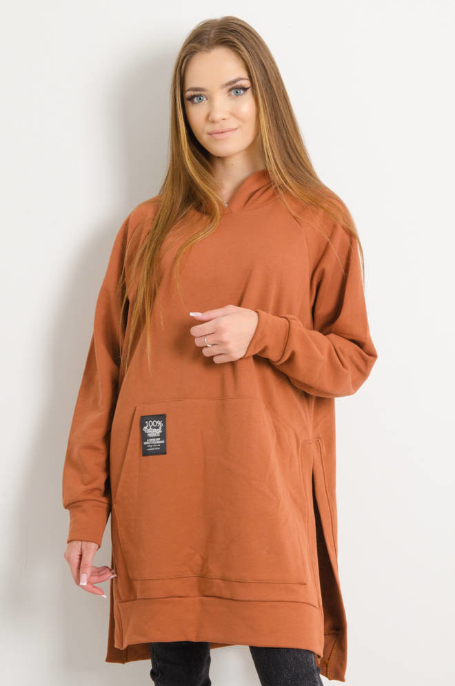 DŁUGA BLUZA KANGURKA Z ROZCIĘCIAMI PO BOKACH- CIEMNO BRĄZOWA