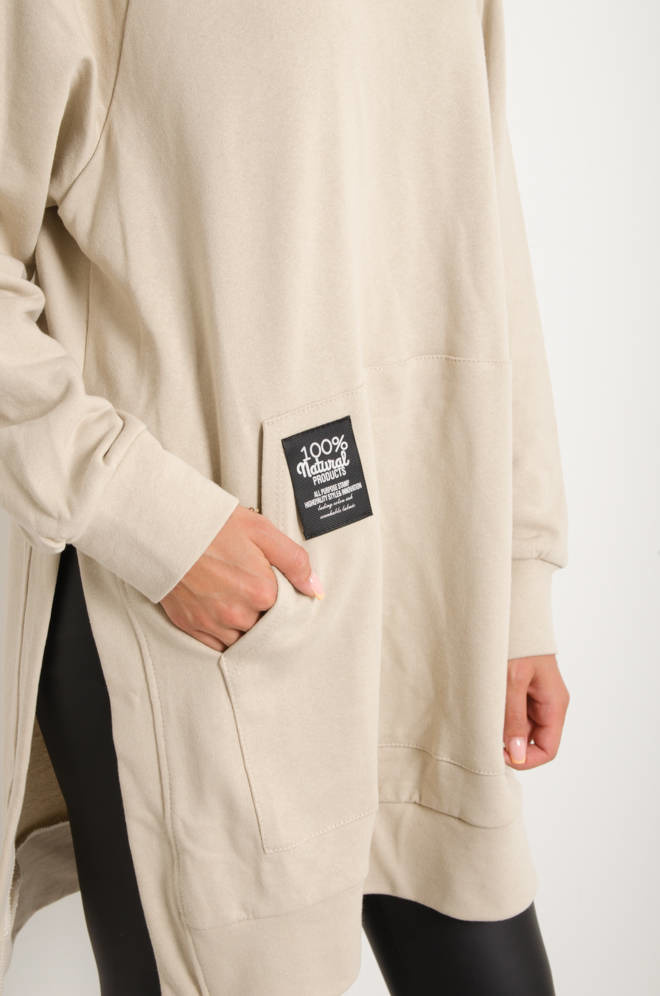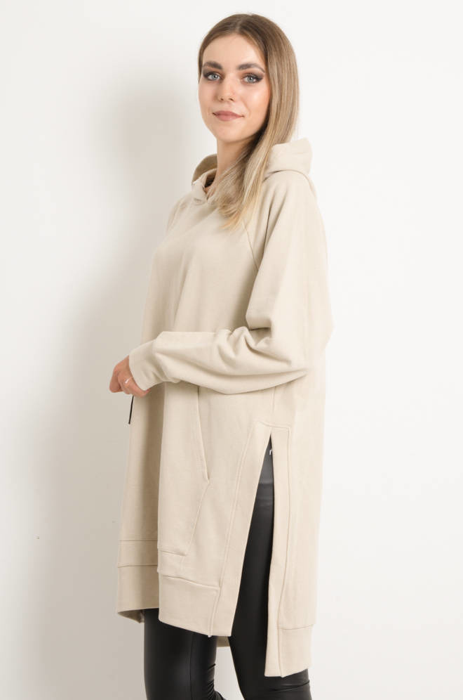 DŁUGA BLUZA KANGURKA Z ROZCIĘCIAMI PO BOKACH- BEŻOWA