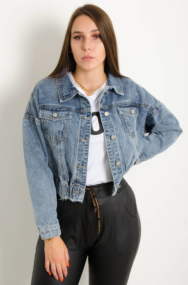 KURTKA JEANSOWA Z GUMĄ W PASIE