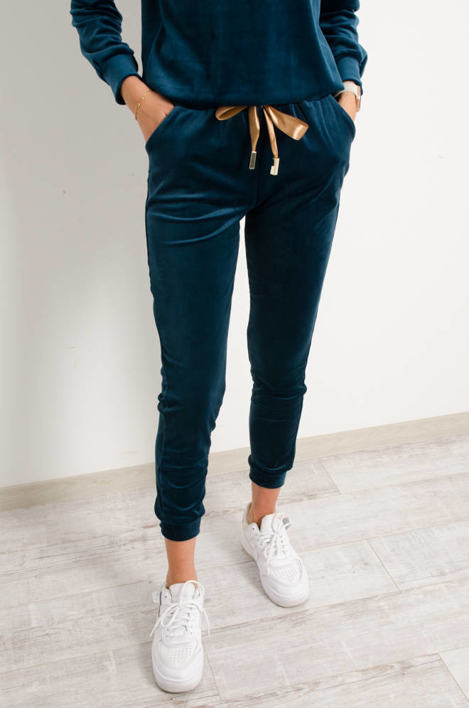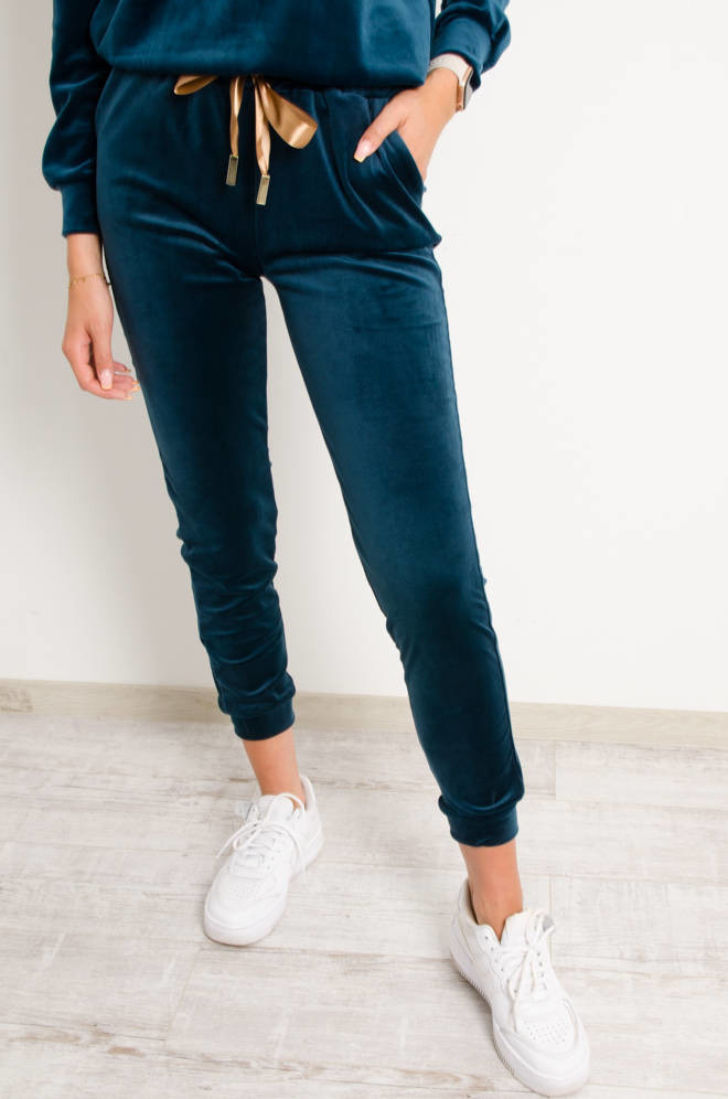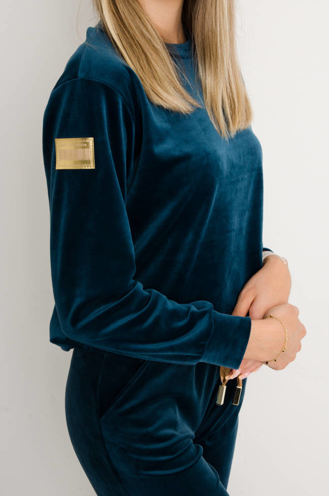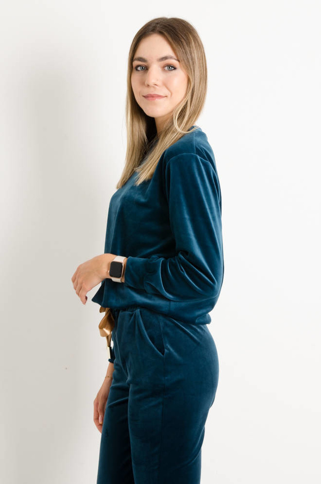 KOMPLET DRESOWY WELUROWY Z OZDOBNĄ NASZYWKĄ- CIEMNY TURKUS